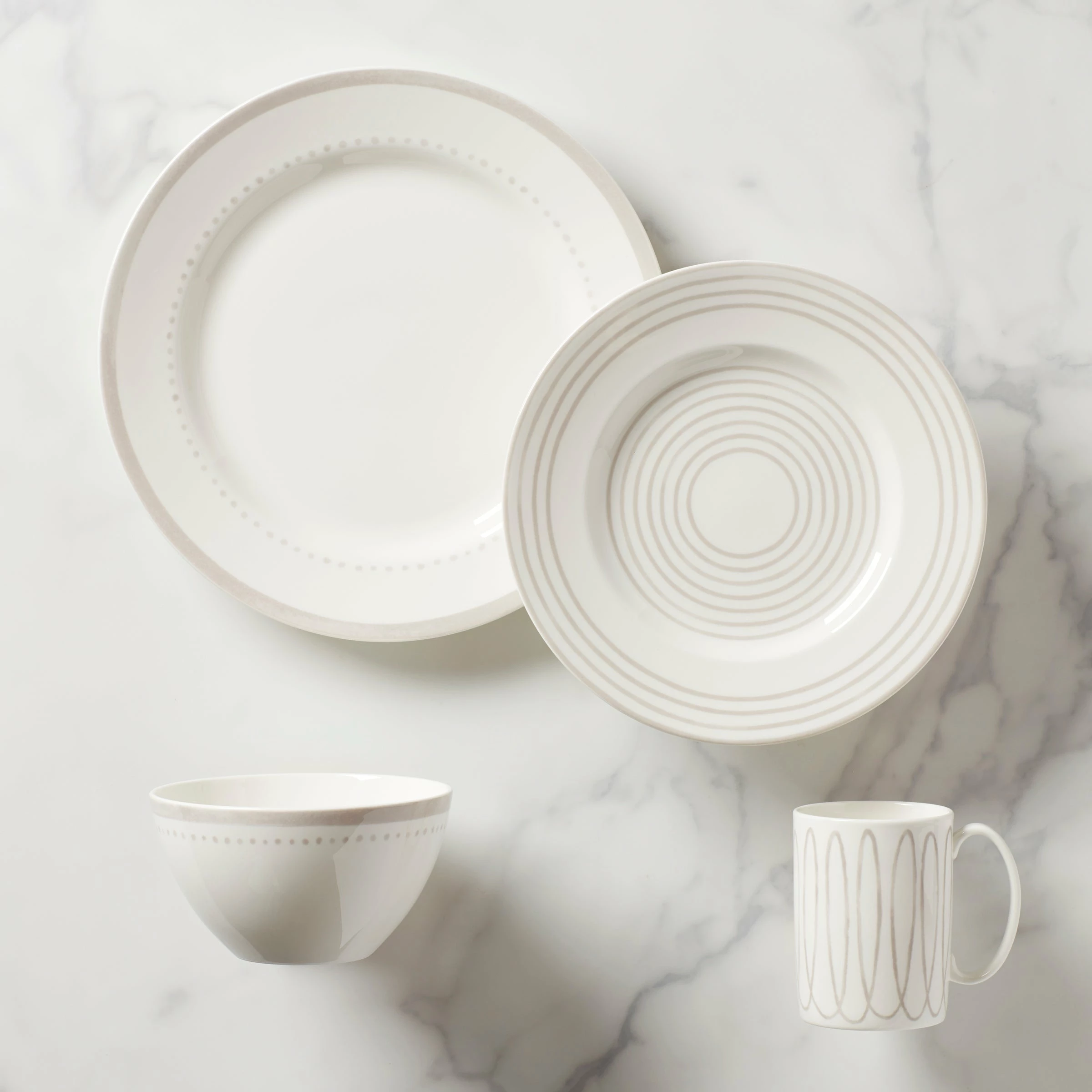 Because every meal — whether it is a multi-course homemade masterpiece or Chinese takeout and cupcakes — deserves a perfectly pretty place setting. Like this 4-piece place setting from the Charlotte Street Grey West Collection, crafted of microwave and dishwasher-safe durable white ceramic porcelain. Bon appetit!