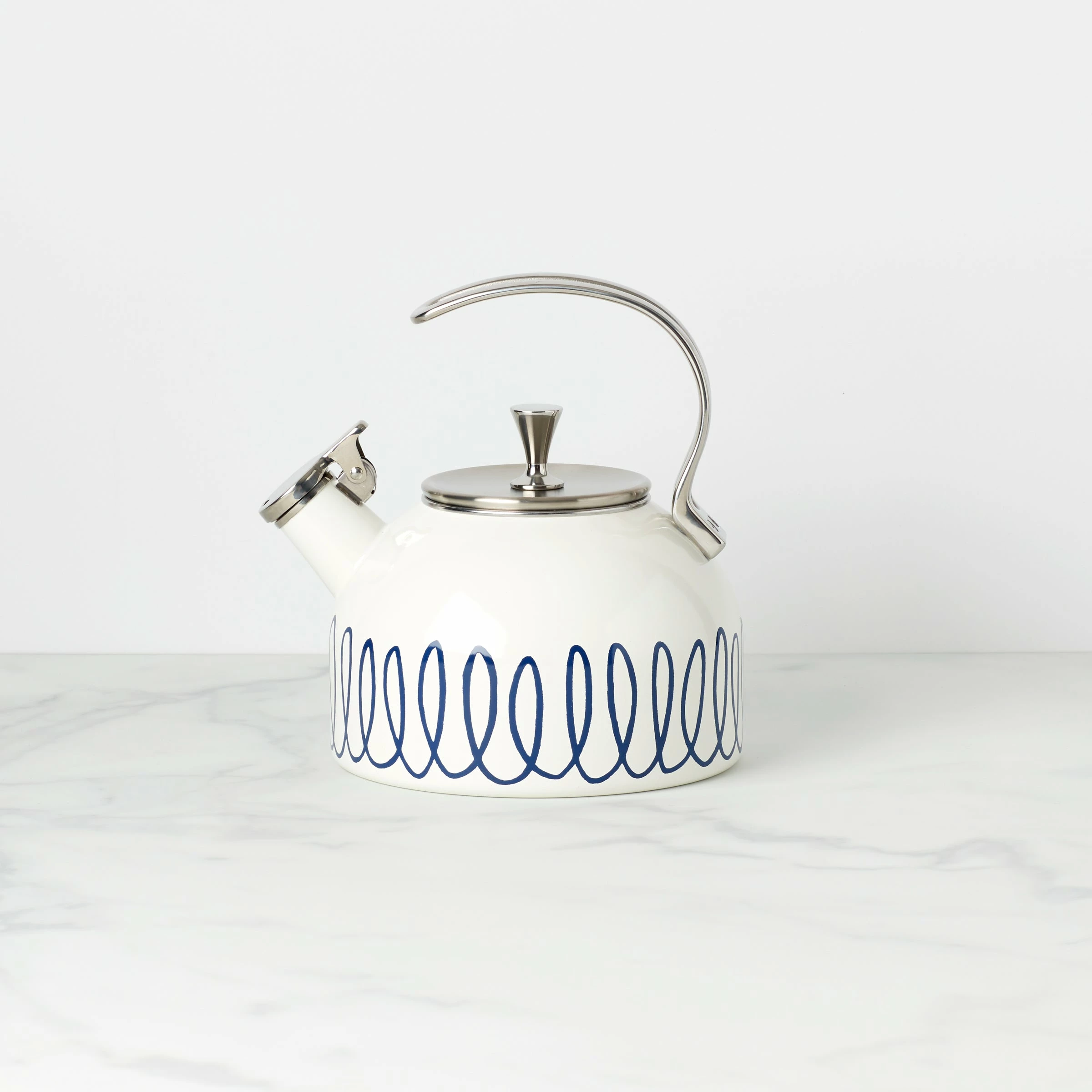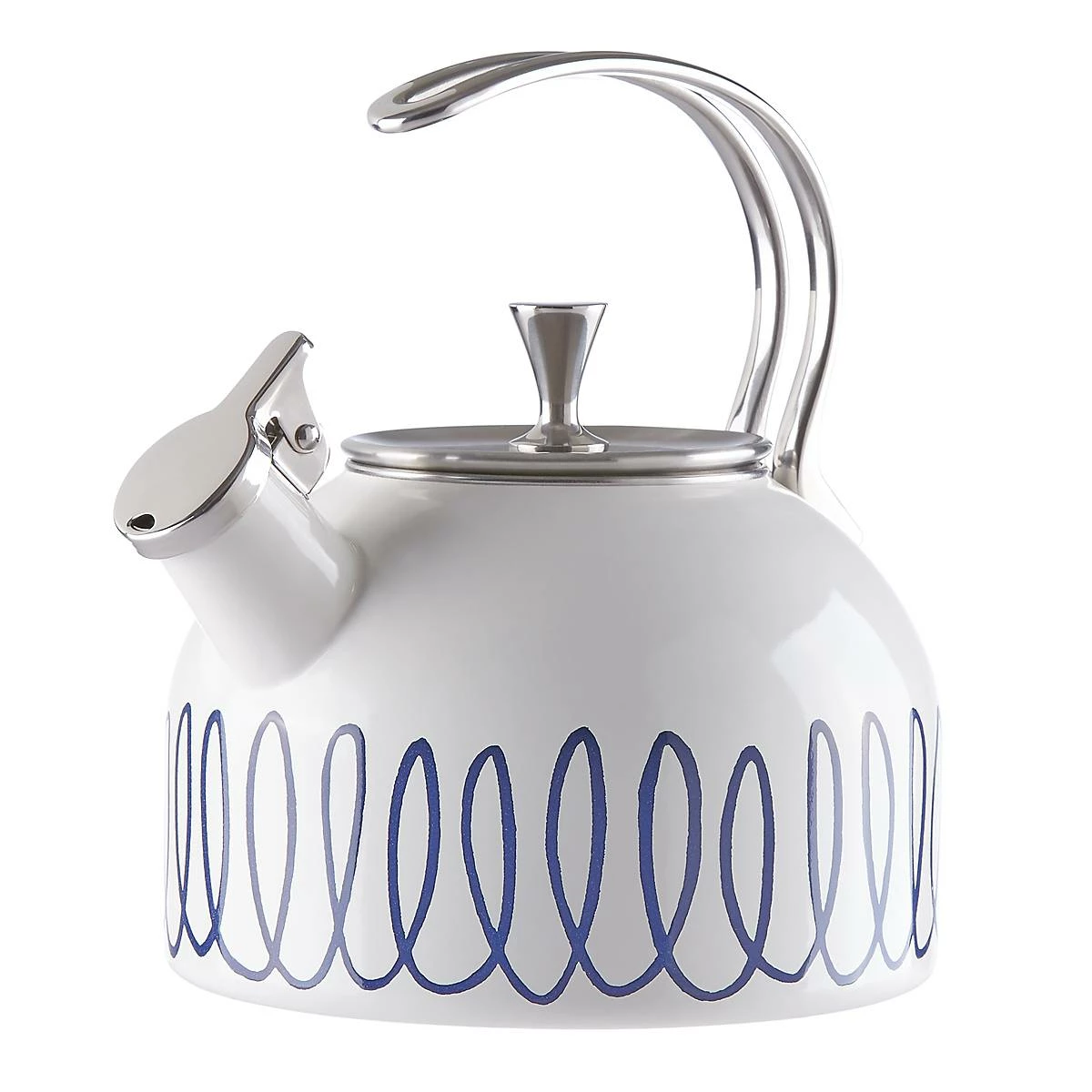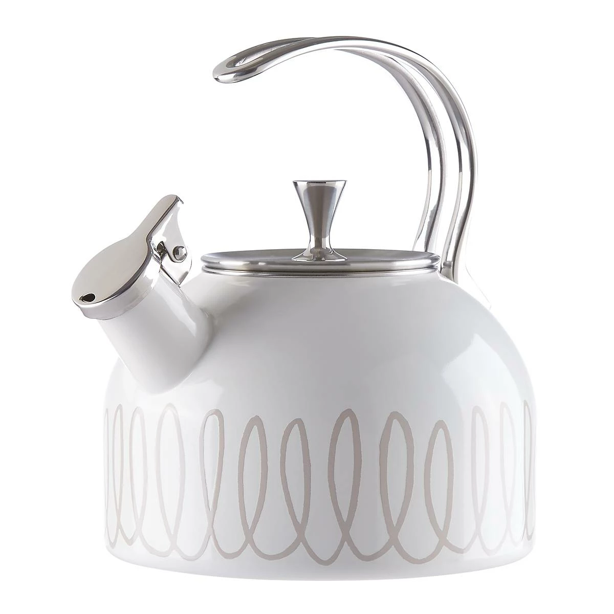 This charming Kate Spade New York tea kettle features hand-drawn loop-di-loops for a carefree design that livens up your kitchen counter. Inspired by the historic London street, the Charlotte Street West pattern mixes cosmopolitan vibes with versatile elegance.