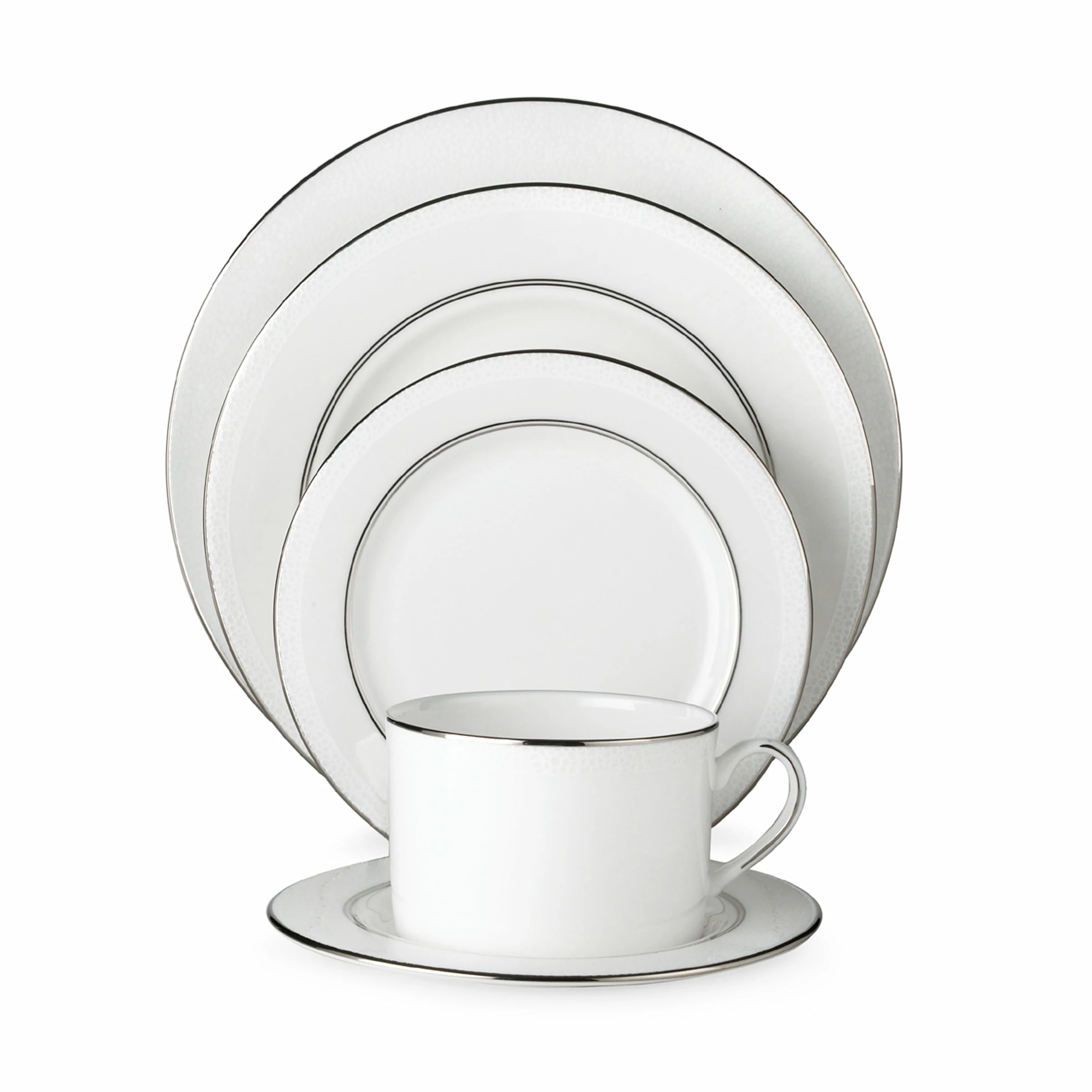 This durable white bone china collection features a delicate band of detail along the rim that is reminiscent of a cobblestone pathway. From Kate Spade New York, the Cypress Point 5-piece Place Setting features precious platinum accents, and is dishwasher-safe.