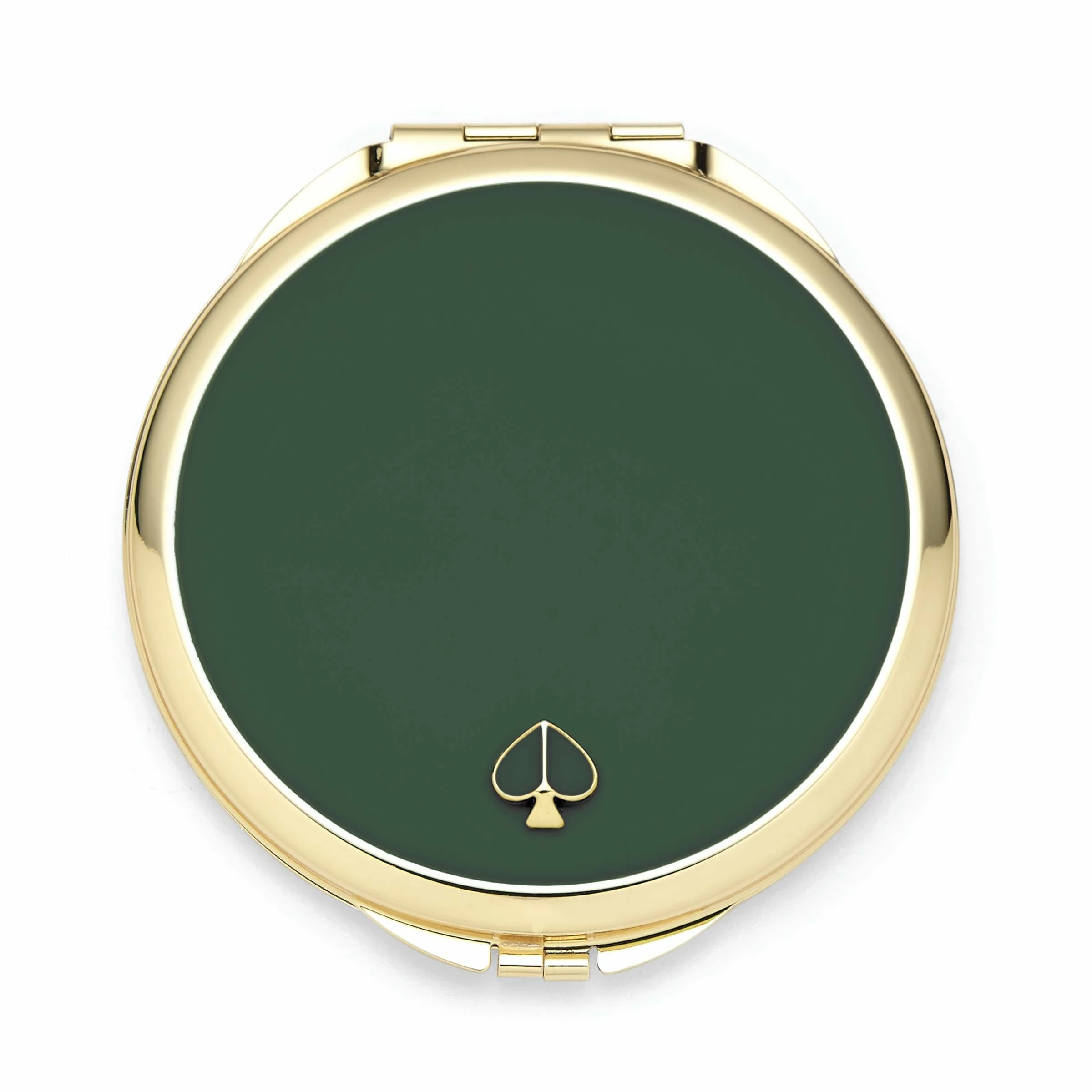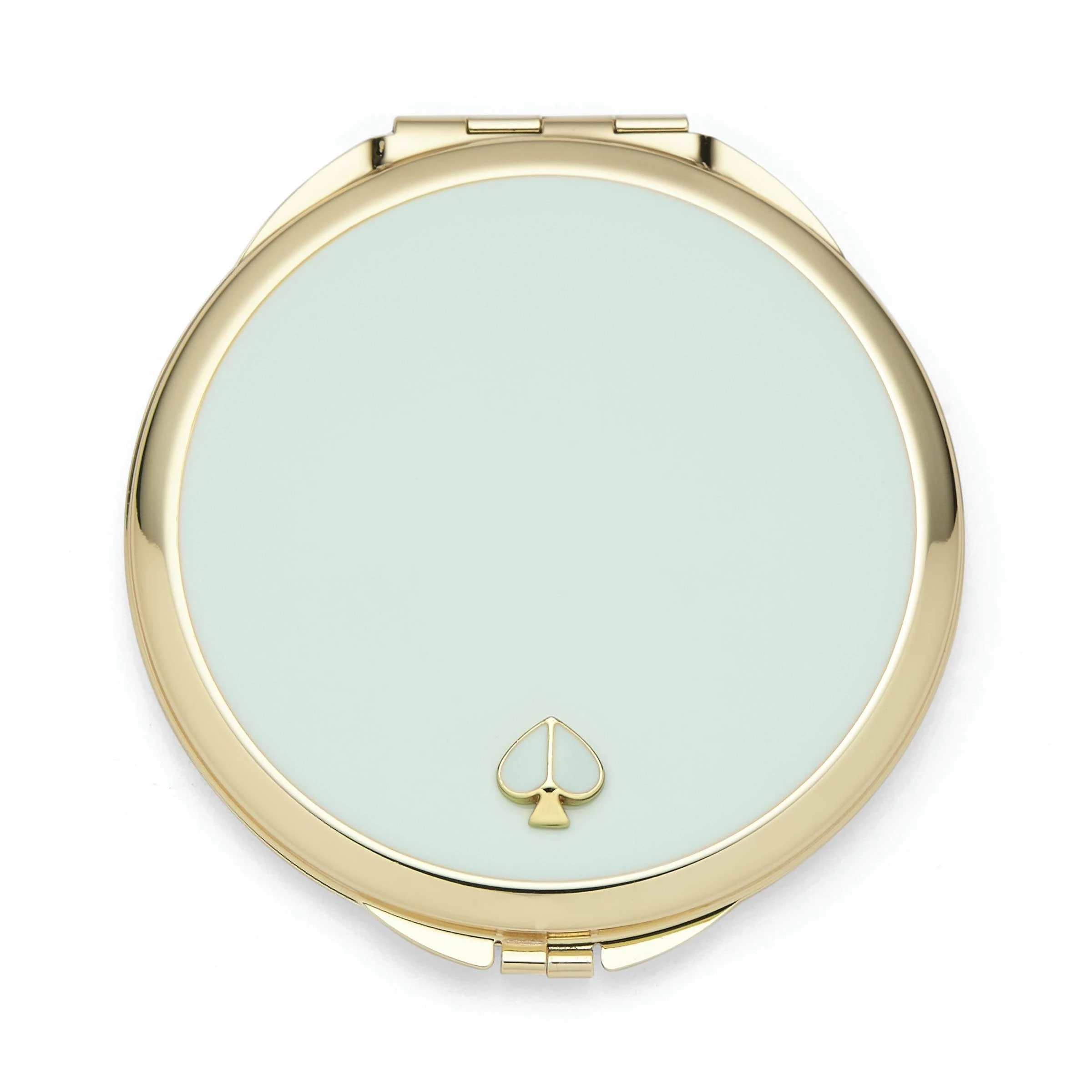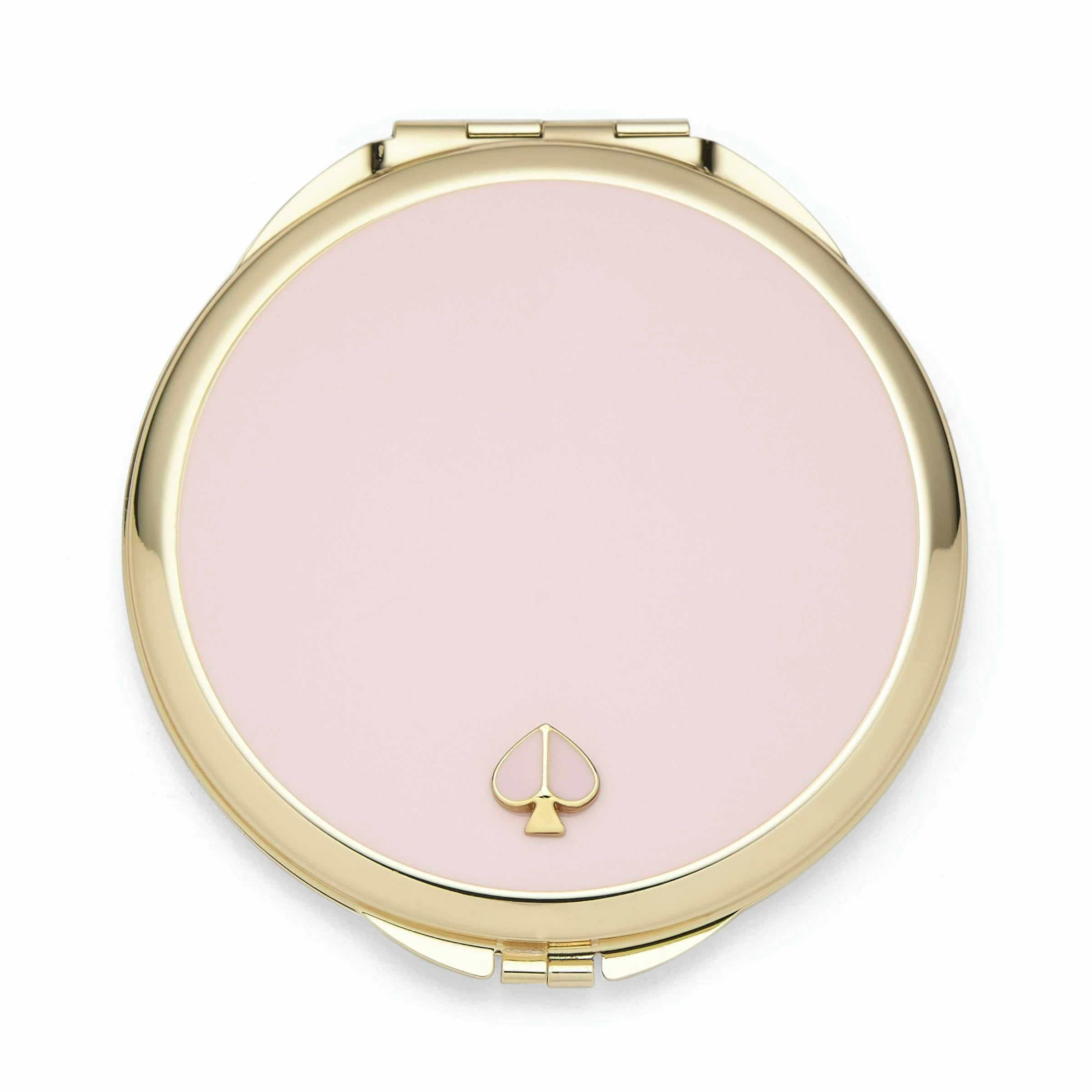 Here’s a very sleek compact from our Kate Spade New York’s Spade Street collection. It’s modern, classic and comes in the prettiest colors. And it’s made from smooth metal so it’s durable and feels really nice to hold while touching up your lipstick. Special details like the angular gold-tone edges and faceted spade are favorite finish touches.