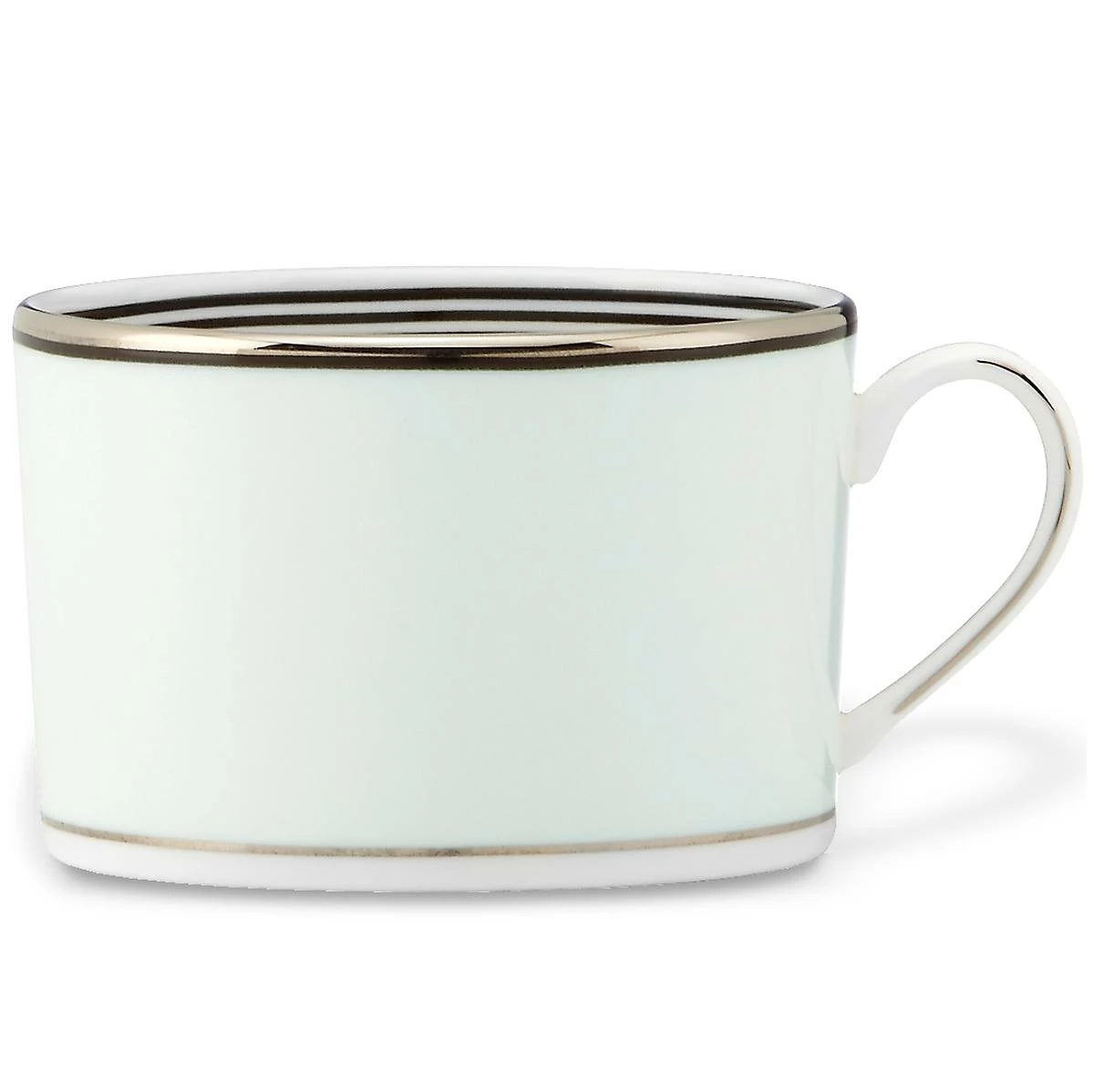 Because every meal — whether it is a multi-course homemade masterpiece or Chinese takeout and cupcakes — deserves a perfectly pretty place setting. Like this classic cup from the Parker Place Collection, crafted of dishwasher-safe, durable white ceramic porcelain with precious platinum accents. Bon appetit!