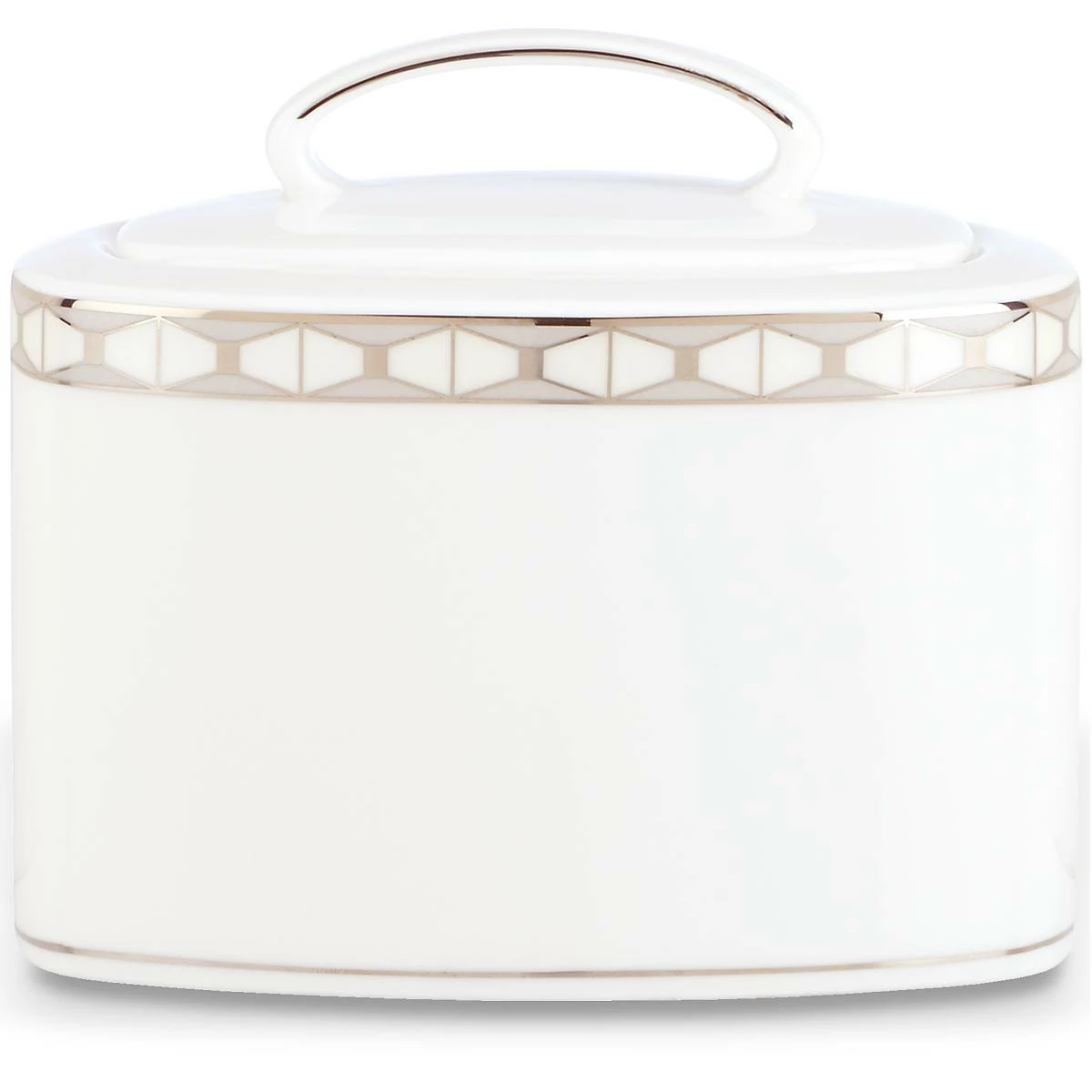Kate Spade New York’s signature style is brought to our beautiful bone china on this classic sugar bowl. Featuring chic, geometric patterns and accented with precious platinum, the Signature Spade collection is the epitome of designer dinnerware.