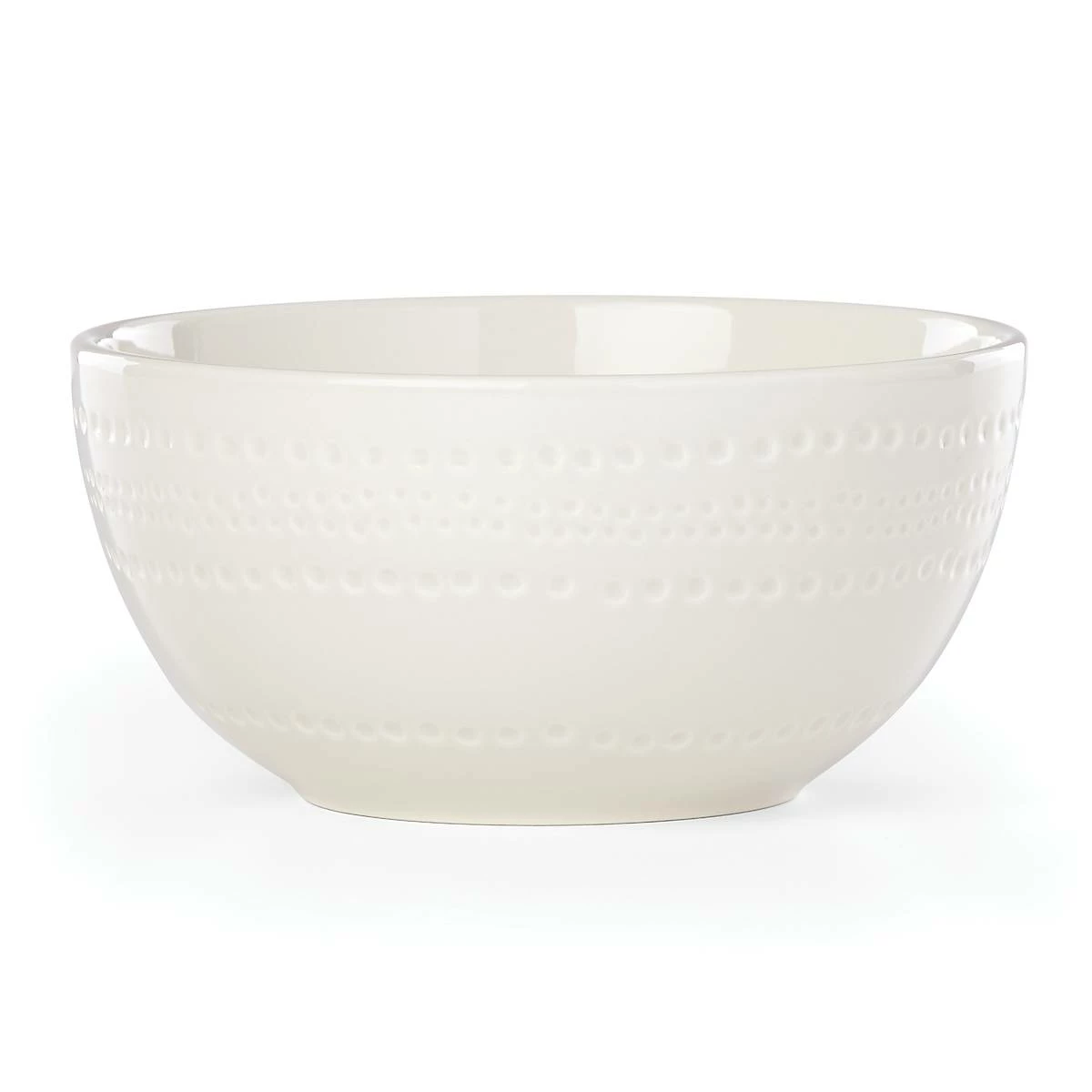 Made from glazed stoneware, the Kate Spade New York Willow Drive Collection is defined by its pretty, eyelet-inspired detail and sets the scene for any meal–whether it’s a homemade, multi-course masterpiece or takeout. The Willow Drive Cream All Purpose Bowl is microwave and dishwasher-safe.