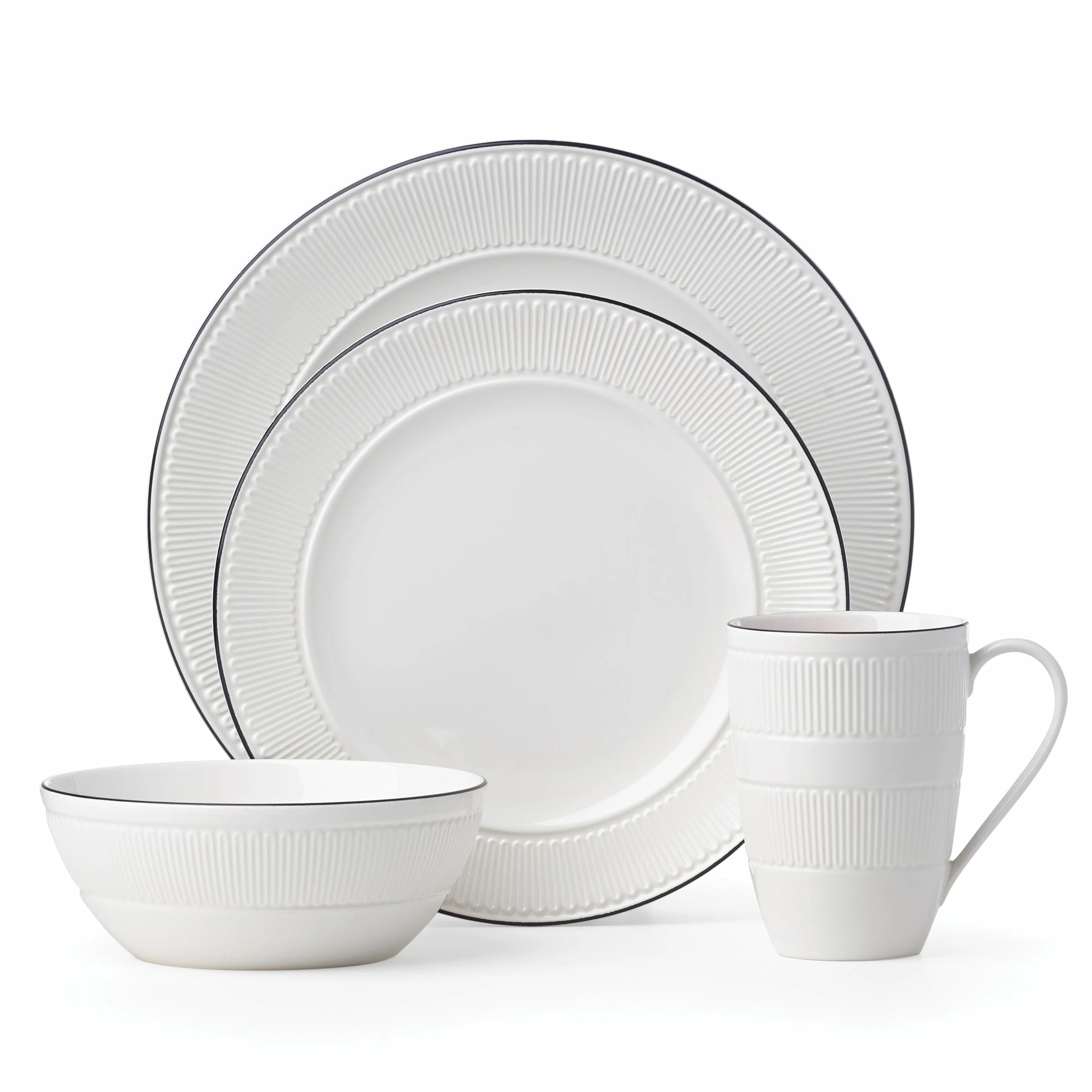 Grosgrain detailing, rich black trim, and a crisp white finish highlight this chic dinnerware from Kate Spade New York. Crafted from durable ironstone, the York Avenue 4-piece Place Setting is microwave and dishwasher-safe.