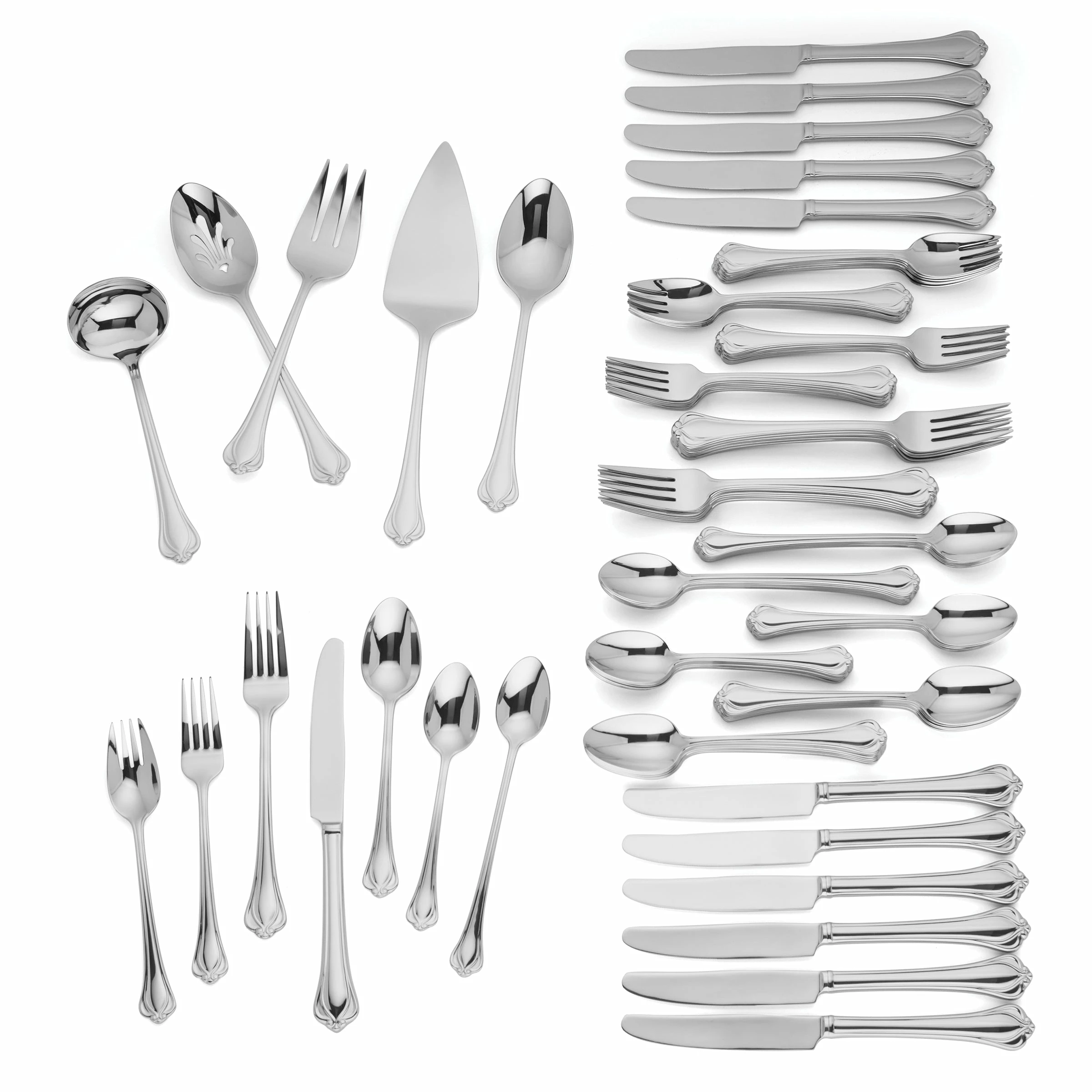 The Alcott 89-piece flatware set features an elegant filigree finish on the handle for an exceptional look. Crafted from 18/10 stainless steel, this high-quality flatware set is both durable and beautiful. Plus, it’s dishwasher safe, making it ideal for everyday use. This sizeable set has everything you need in one and can be used for both casual and formal occasions.