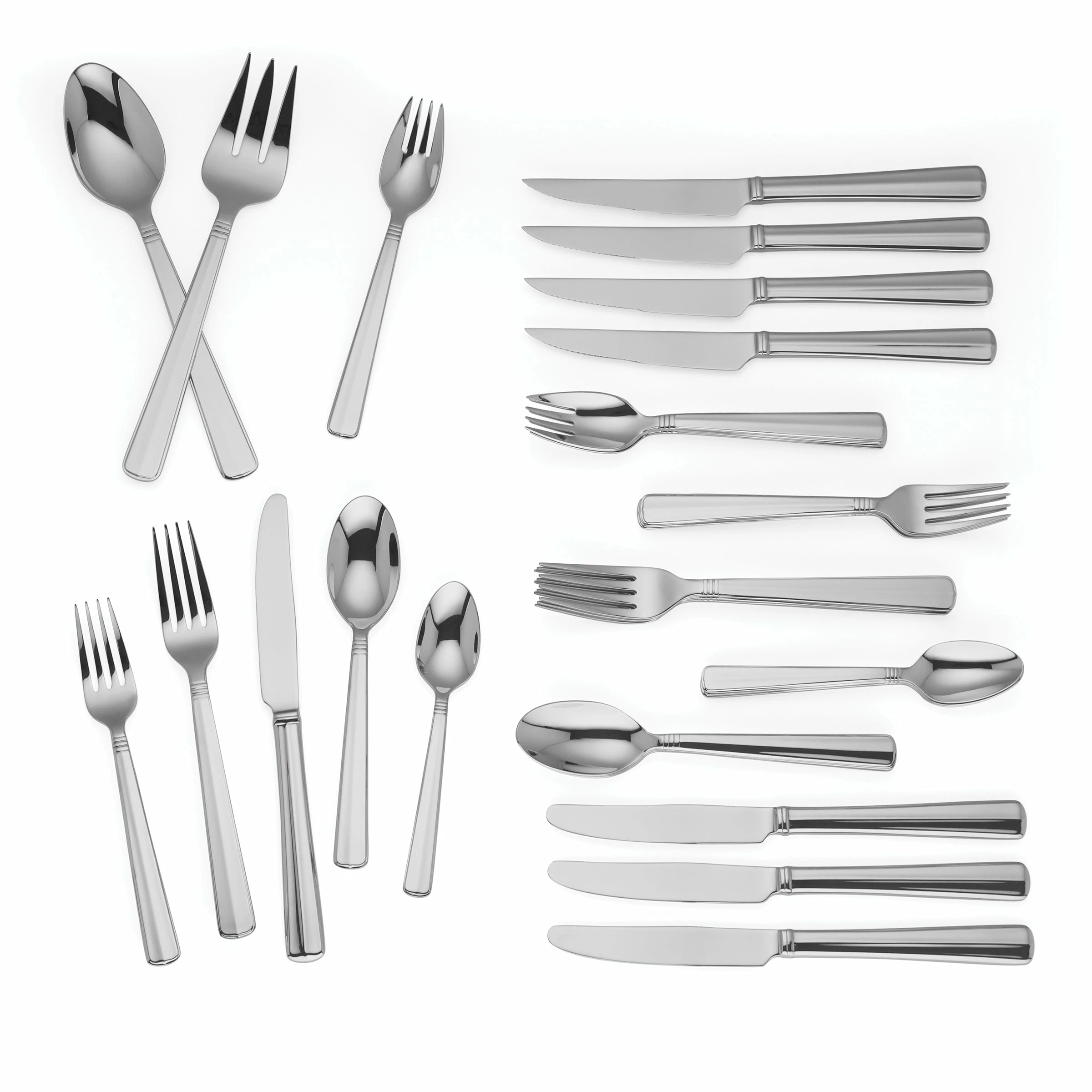 Perfect for the casual lifestyle, the Ballard Court 30-piece flatware set includes a full service for four and is everything you need to set your table. This craft-inspired pattern features banding at the top and is raised in the center with both sides gently sloping to the edge for a look that is simple and elegant. This set is crafted of tarnish resistant 18/10 stainless steel.