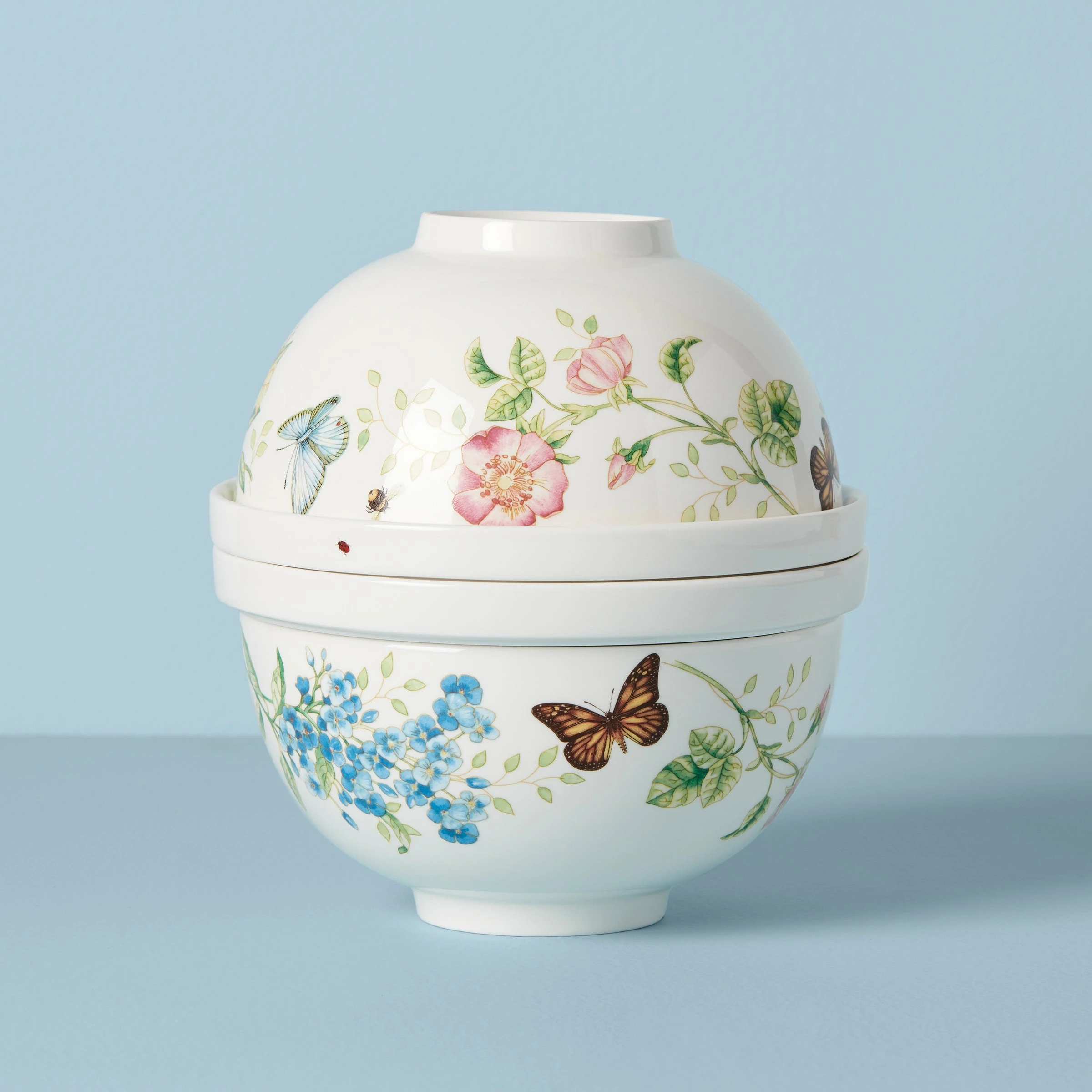Our popular Luna Nesting Dinnerware Set now comes in our iconic Butterfly Meadow pattern! It’s crafted of durable, long-lasting porcelain with everyone’s favorite spring design of florals and graceful butterflies on each piece. This all-in-one nesting piece hides six bowls and two plates inside. Take it apart piece by piece to reveal each microwave-and-dishwasher-safe style. Put it all back together and it becomes a compact centerpiece for your table. It’s a must-have gift for every Butterfly Meadow fan!