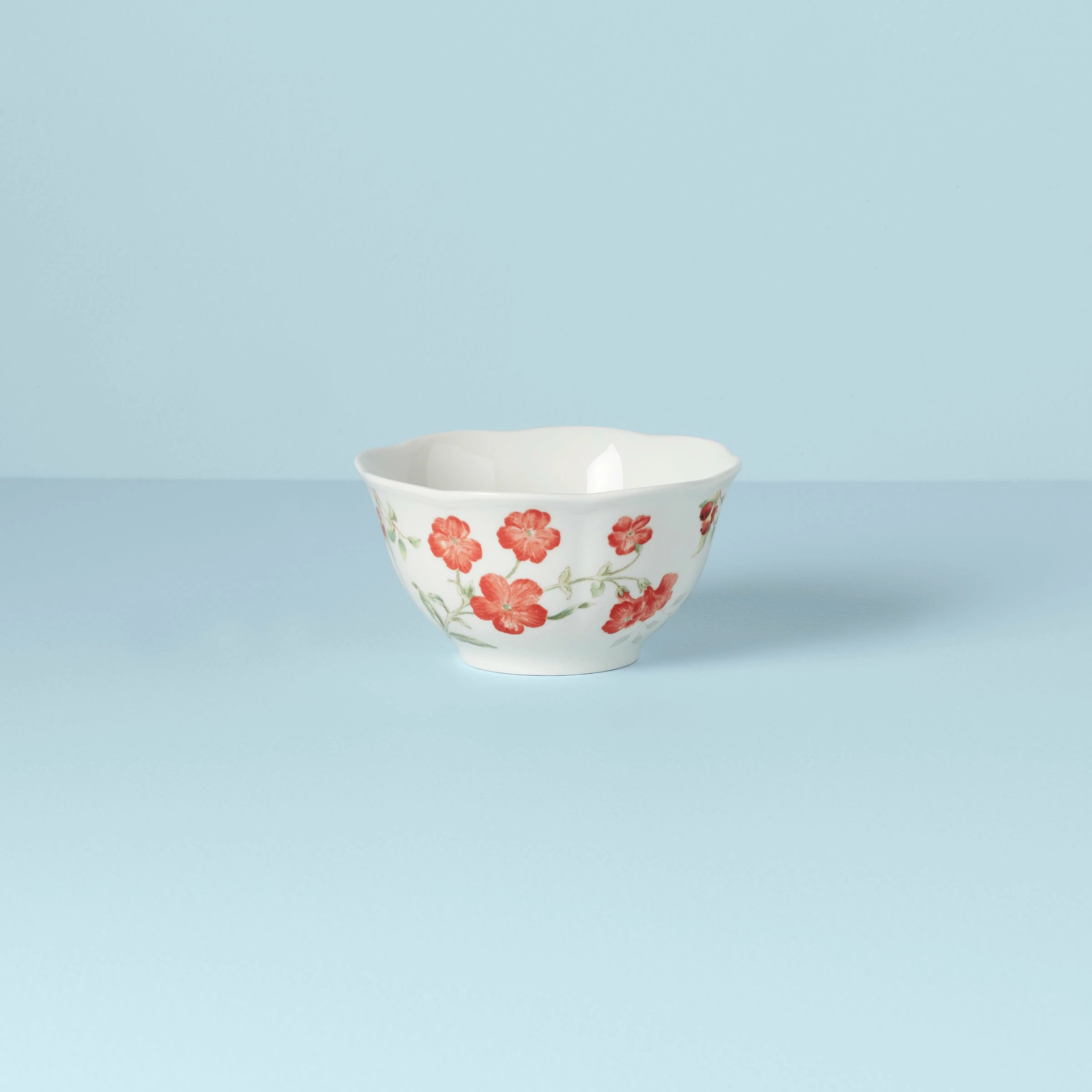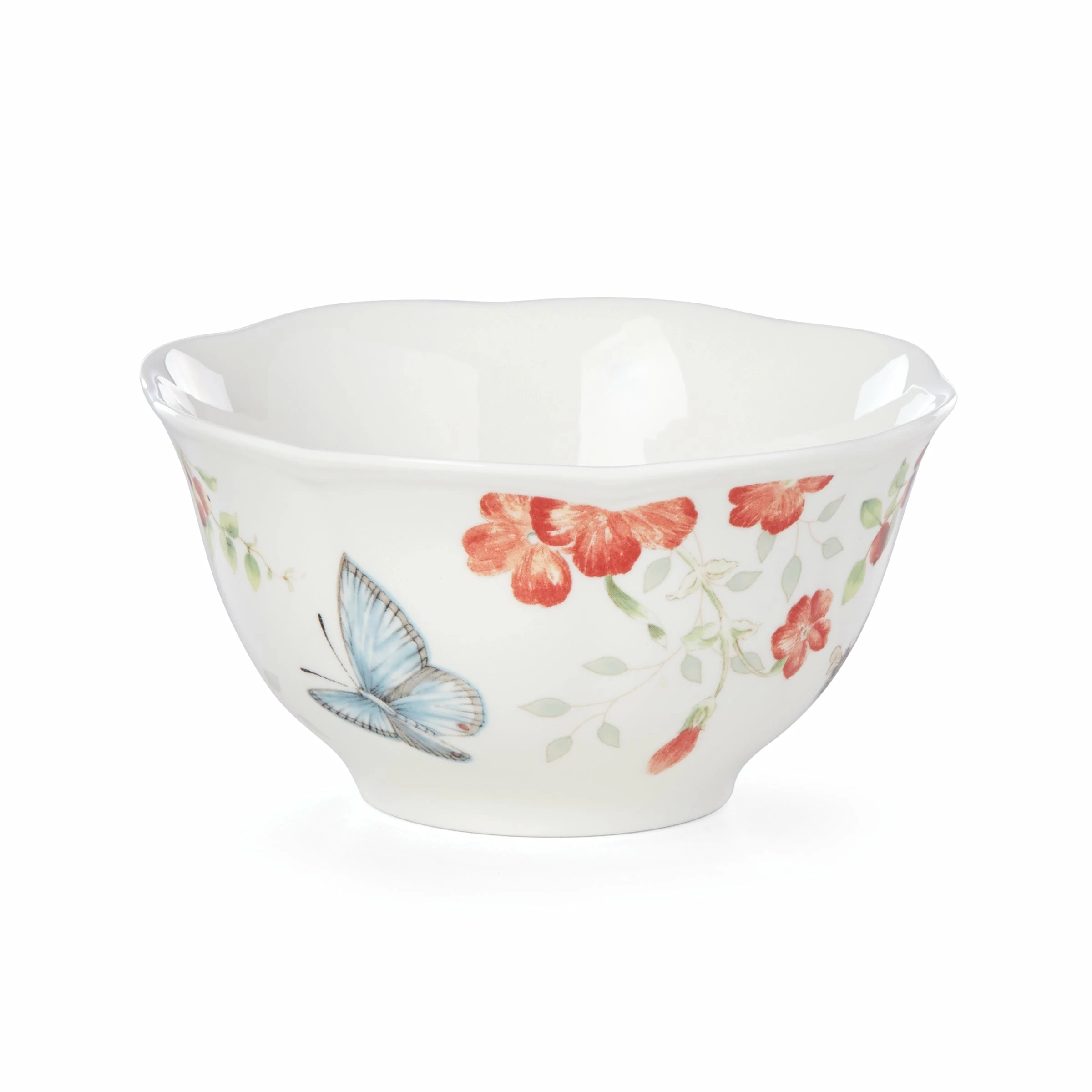 Bright red flowers add luscious detail to our charming Butterfly Meadow pattern. This bowl brings a springtime look to your table with its scalloped edge and swallowtail butterfly artistry.