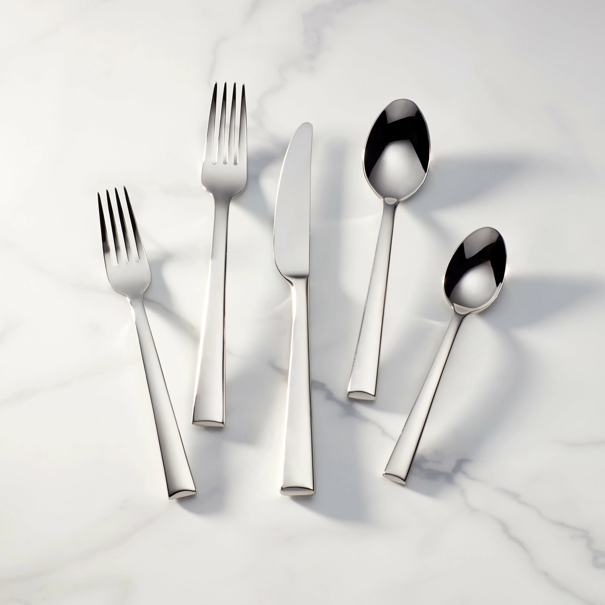 Featuring smooth, elegant lines and a modern shape, this five-piece place setting, crafted of durable 18/10 stainless steel, is a sophisticated addition to the dinner table. The setting pairs well with dinnerware of any style as well as other pieces in the Continental Collection, and includes a dinner fork, dinner knife, salad fork, tablespoon, and teaspoon.