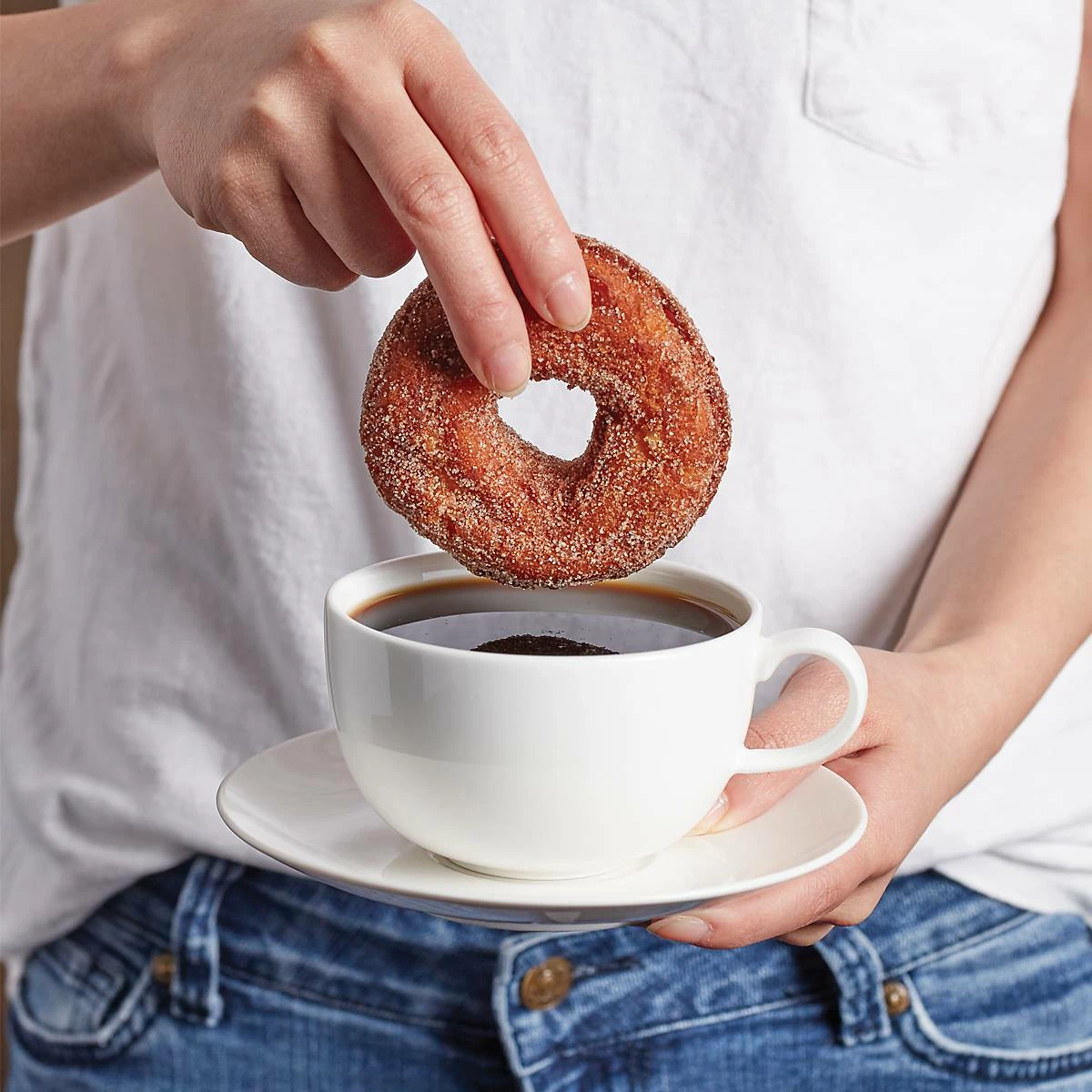 The bone china Dual Saucer brings something special to the table. The inspired design provides many solutions for every serving need.