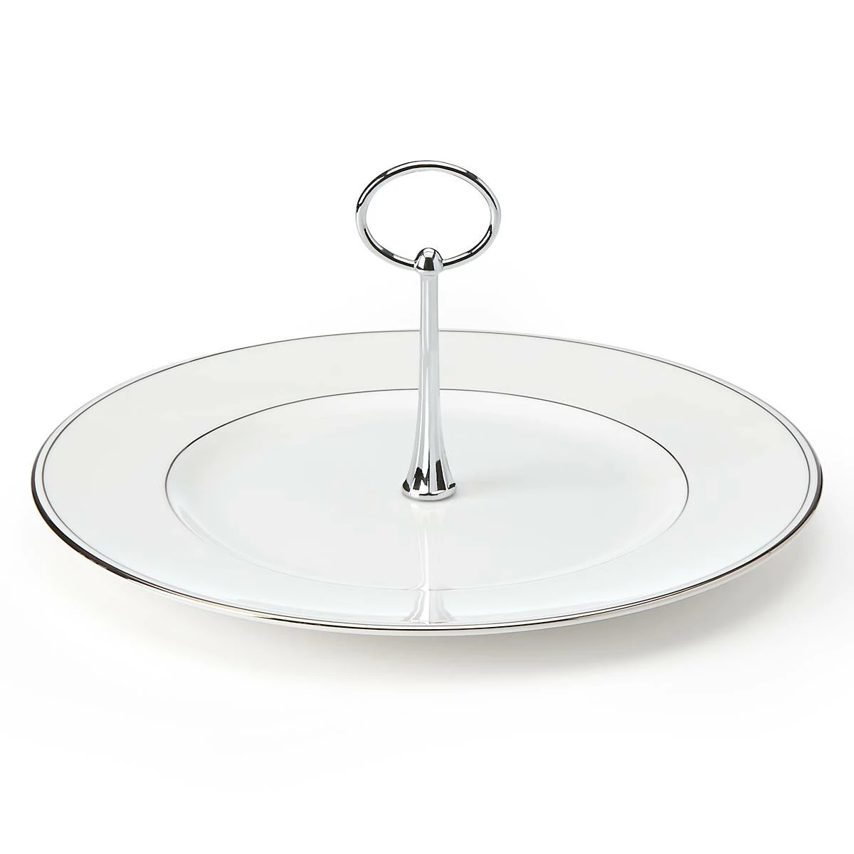 Ideal for serving desserts and other delicious small bites, the Federal Platinum Dessert Server features pristine white surfaces and a convenient handle that comes up from its center. Crafted from durable white bone china, this server is accented in precious platinum.