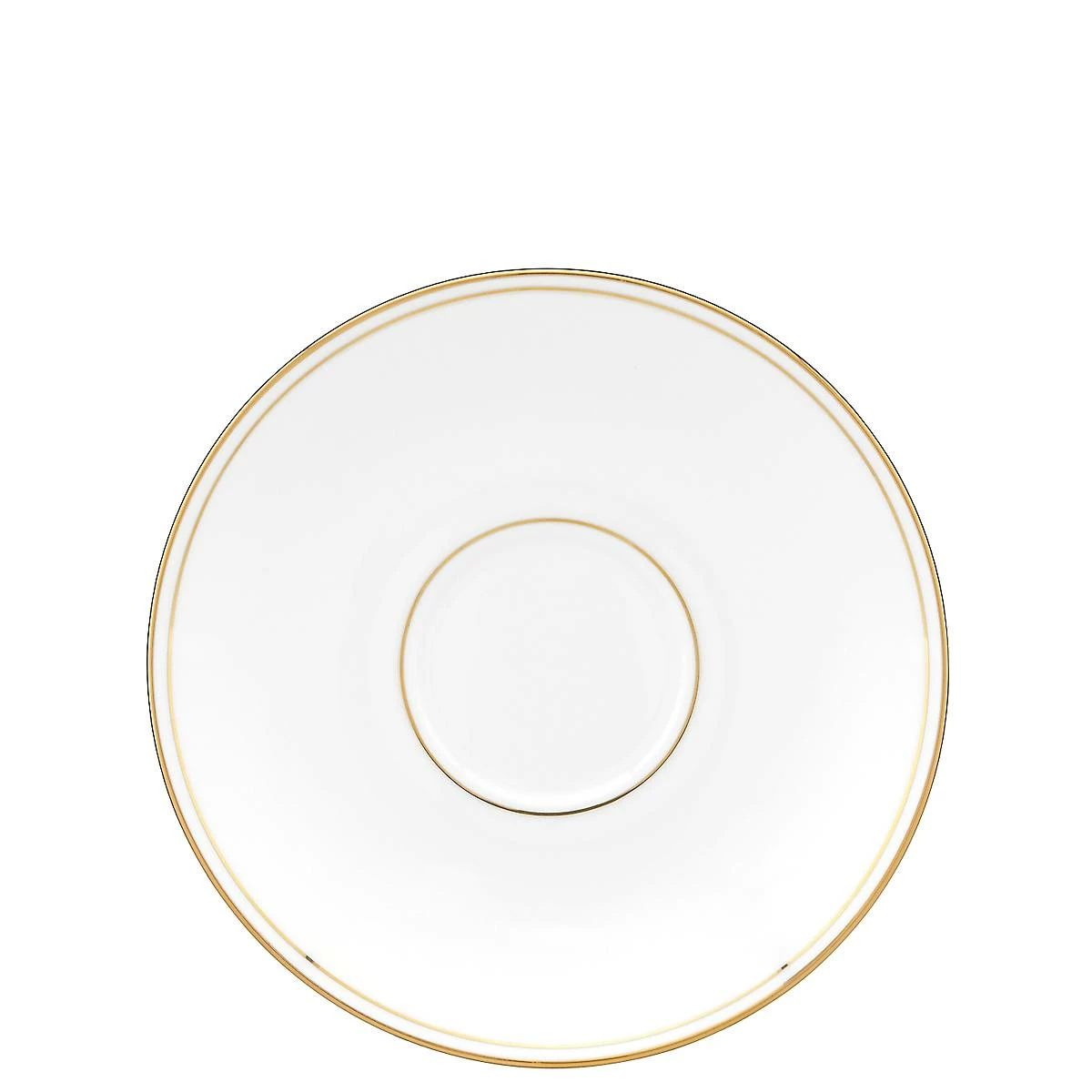 Accented with platinum, this durable white bone china tea saucer is an opulent addition to the table. Its smooth form and gentle curves add a touch of grace to afternoon tea or coffee with close friends. This item is dishwasher-safe, for added convenience.