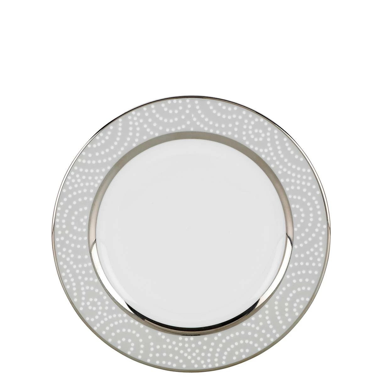 The ornate and elaborate Pearl Beads Bread Plate is framed by a swirling motif of raised white beads inside two concentric circles of precious platinum accenting. This elegant and durable bone china accent plate is also dishwasher-safe, for added convenience.