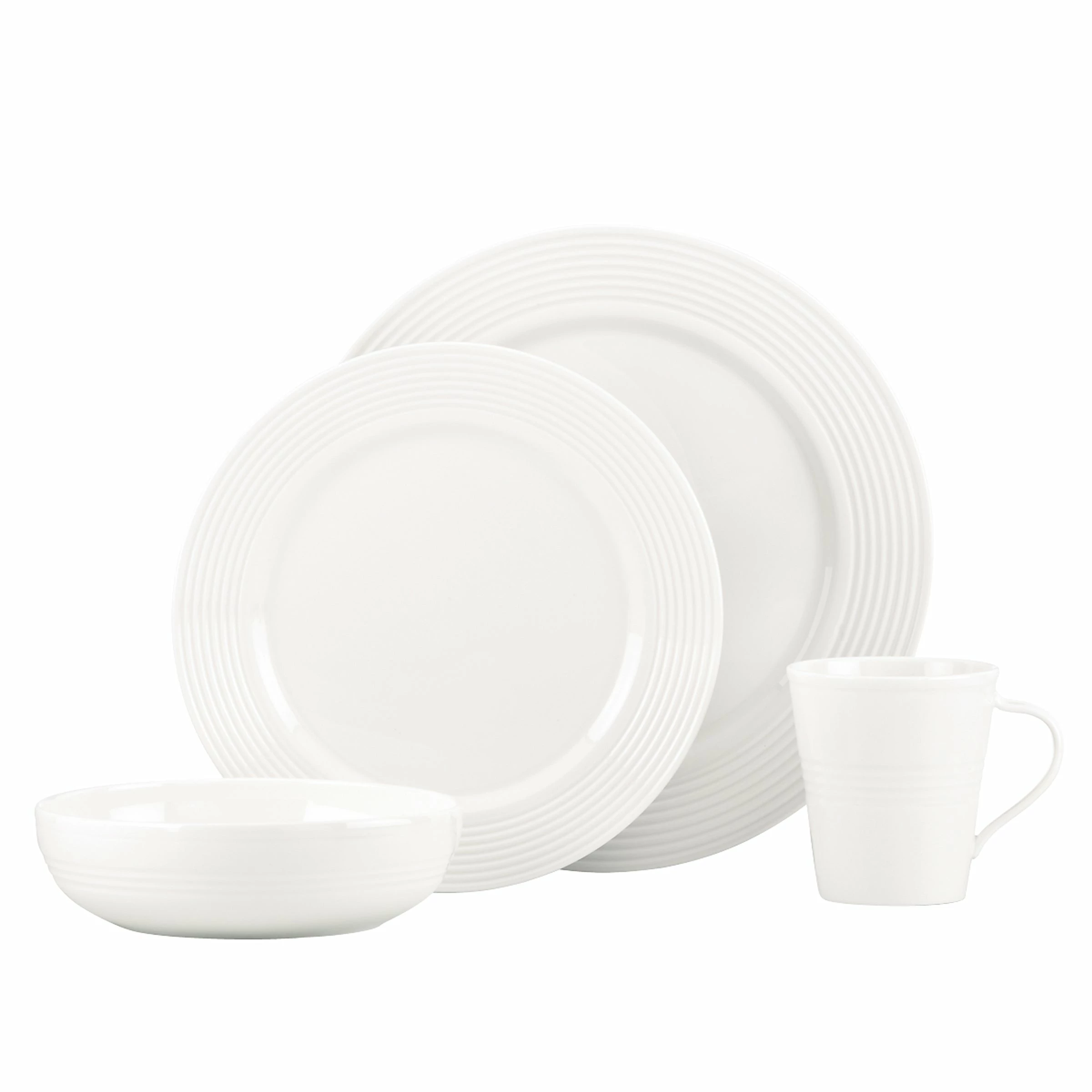 The Tin Can Alley Four Degree 4-piece Place Setting adopts the tin can’s emblematic corrugated rings on durable porcelain for a simple, aesthetic design. This dishwasher and microwave-safe set suits any occasion and complements a variety of dinnerware styles.