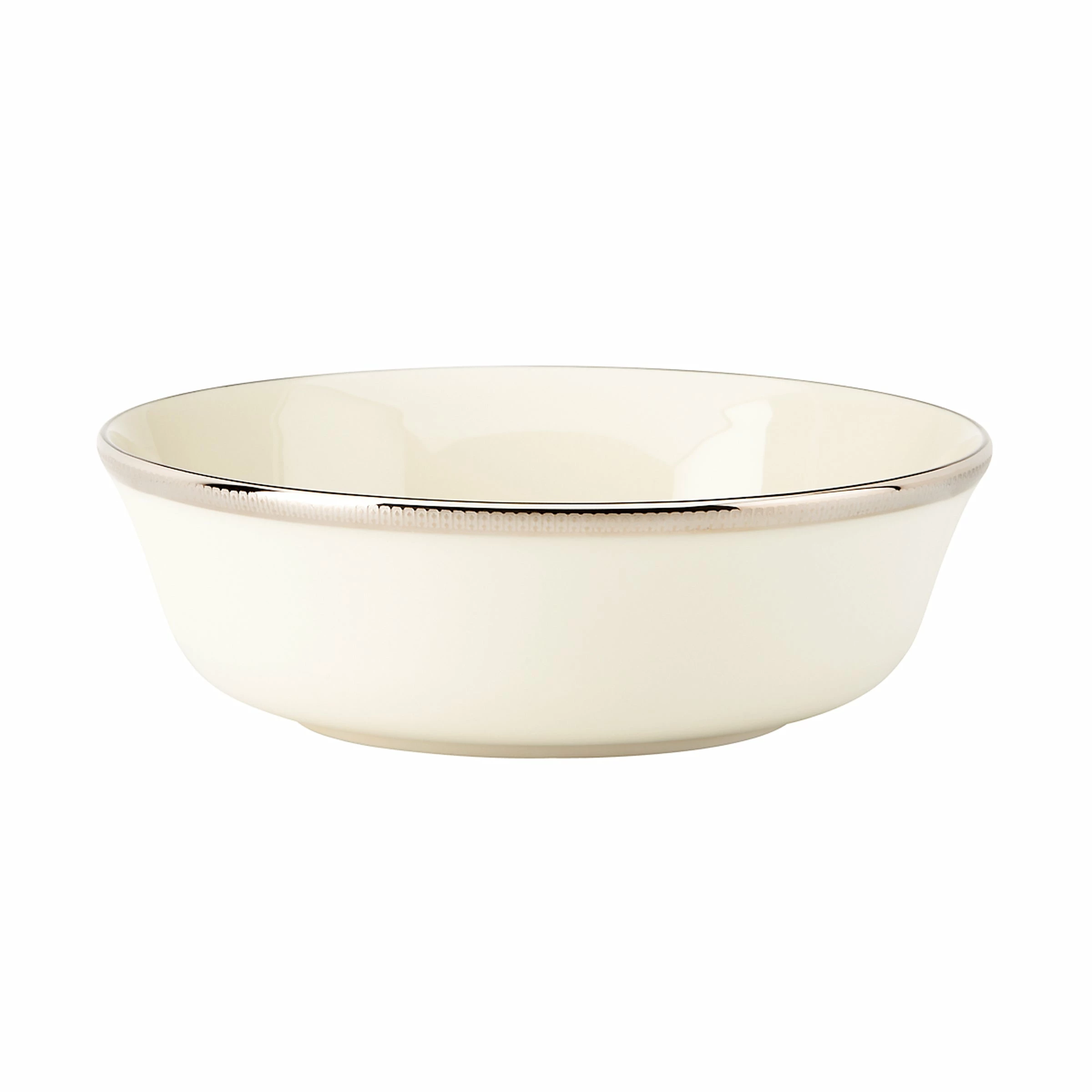 This ivory all-purpose bowl features smooth curves and textured bands of precious platinum, that give the bowl a soft luminous glow, making it ideal for everyday use as well as upscale occasions. Crafted of durable bone china, this item is dishwasher-safe, for added convenience.