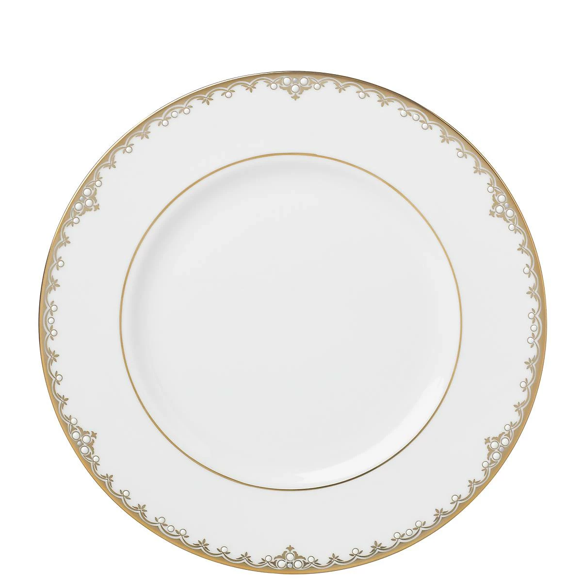 Made from durable white porcelain and adorned with a brilliant 24-karat gold-accented border, this accent plate adds a luxurious feel to mealtime and elevates dinners with friends and family. This item is dishwasher-safe, for added convenience.