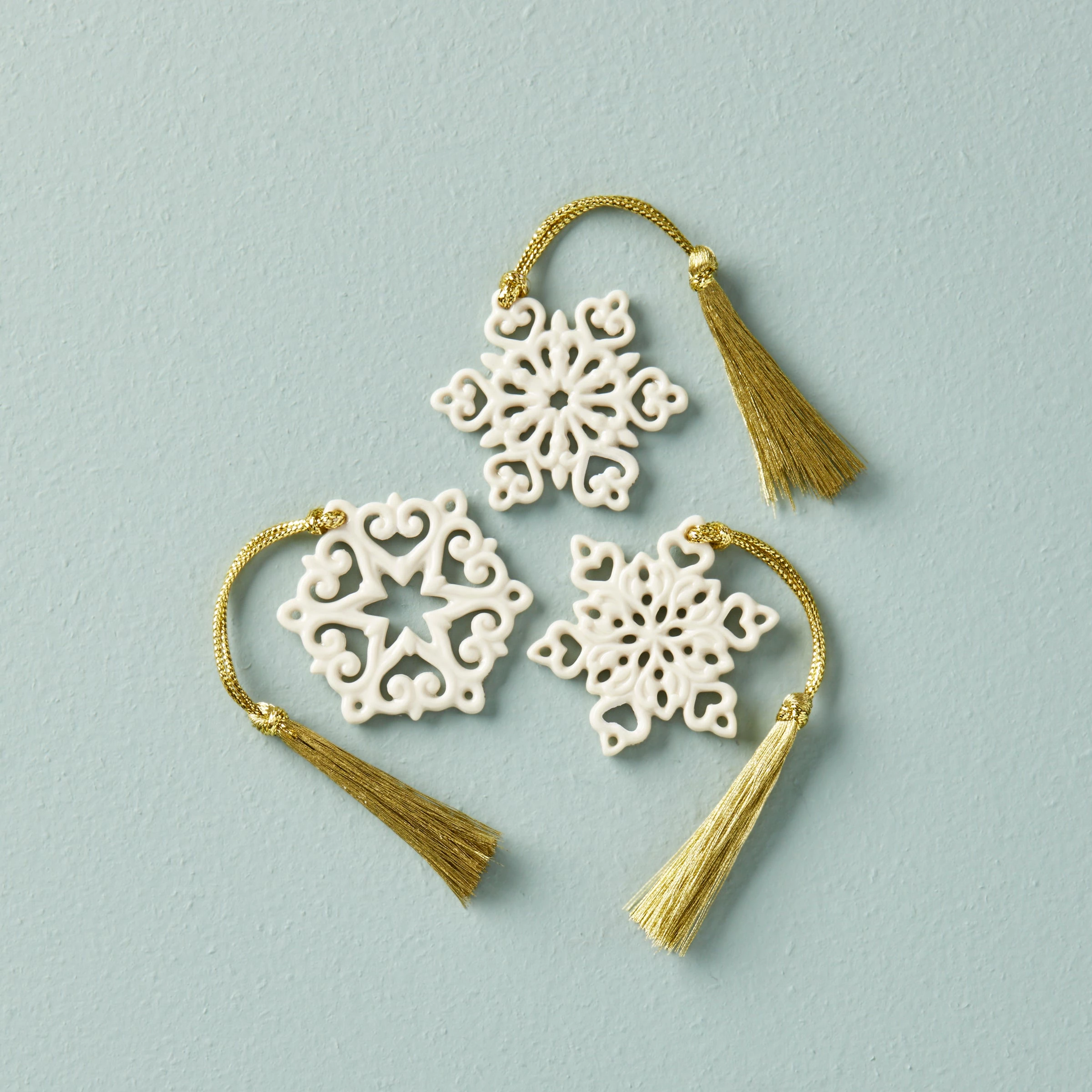Add a little charm with these mini porcelain snowflakes. This 3-piece set features intricate pierced detailing for a delightful look. It’s a great addition to any gift tag or you can use it as an extra place setting marker for your holiday dinners!