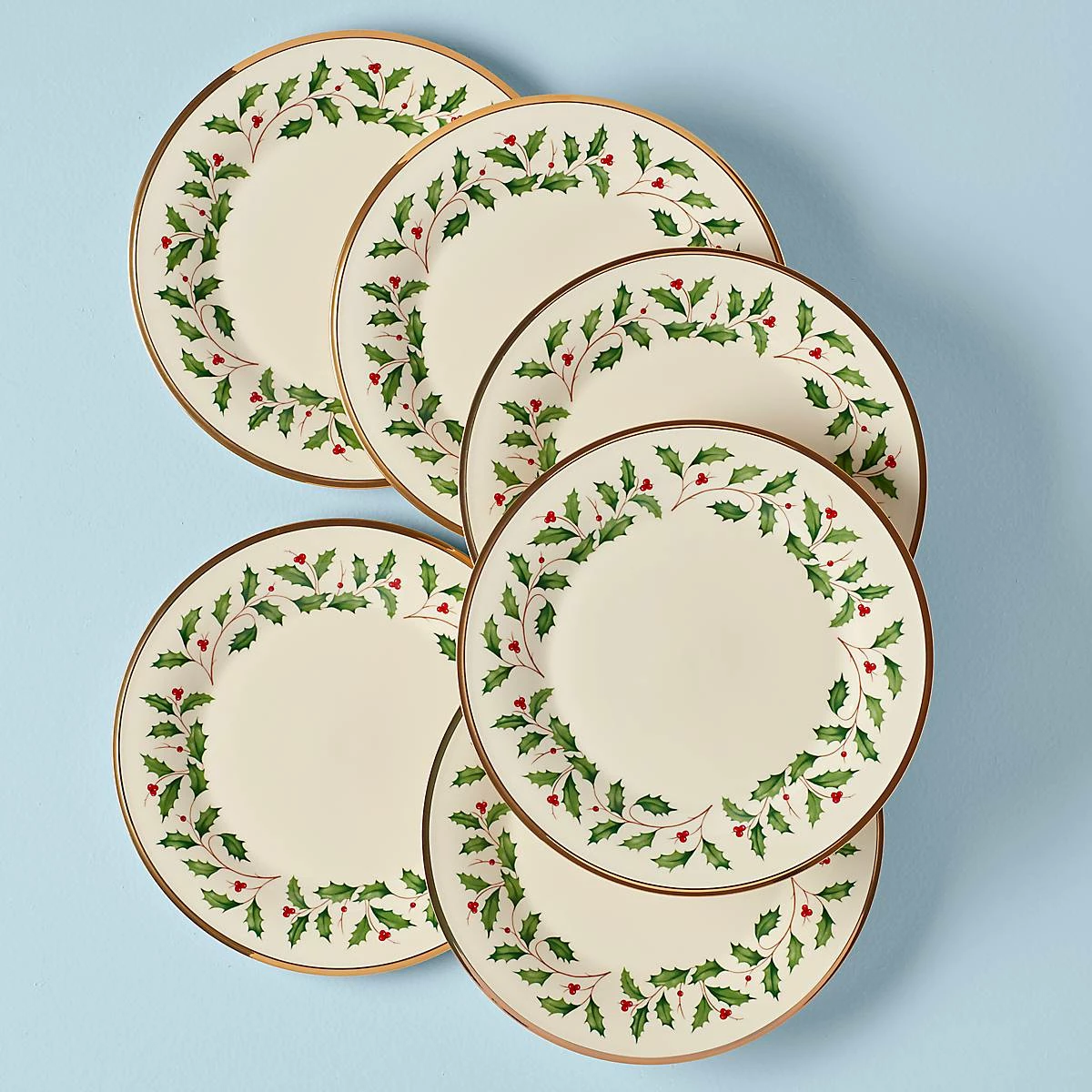The Lenox Holiday dinnerware collection has been part of holiday celebrations for generations. This Holiday Dinner Plate Set will make a wonderful addition to your table every holiday season! It’s decorated with the cherished holly and berries Holiday motif and crafted of porcelain with a precious gold rim. The best part? Get six plates for the price of three!