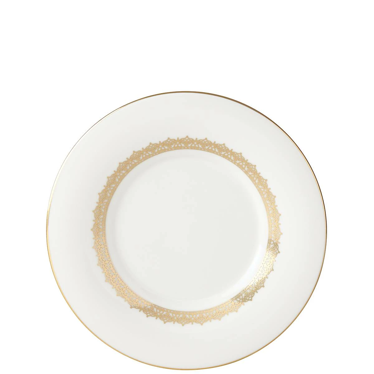 Ideal for coffee or tea during dessert, the impressive Lace Couture Gold Saucer is crafted of durable and pristine white bone china, and is framed by a laced motif that is similar to a rich tapestry. This ornate saucer is accented in precious 24-karat gold, and is dishwasher-safe for added convenience.