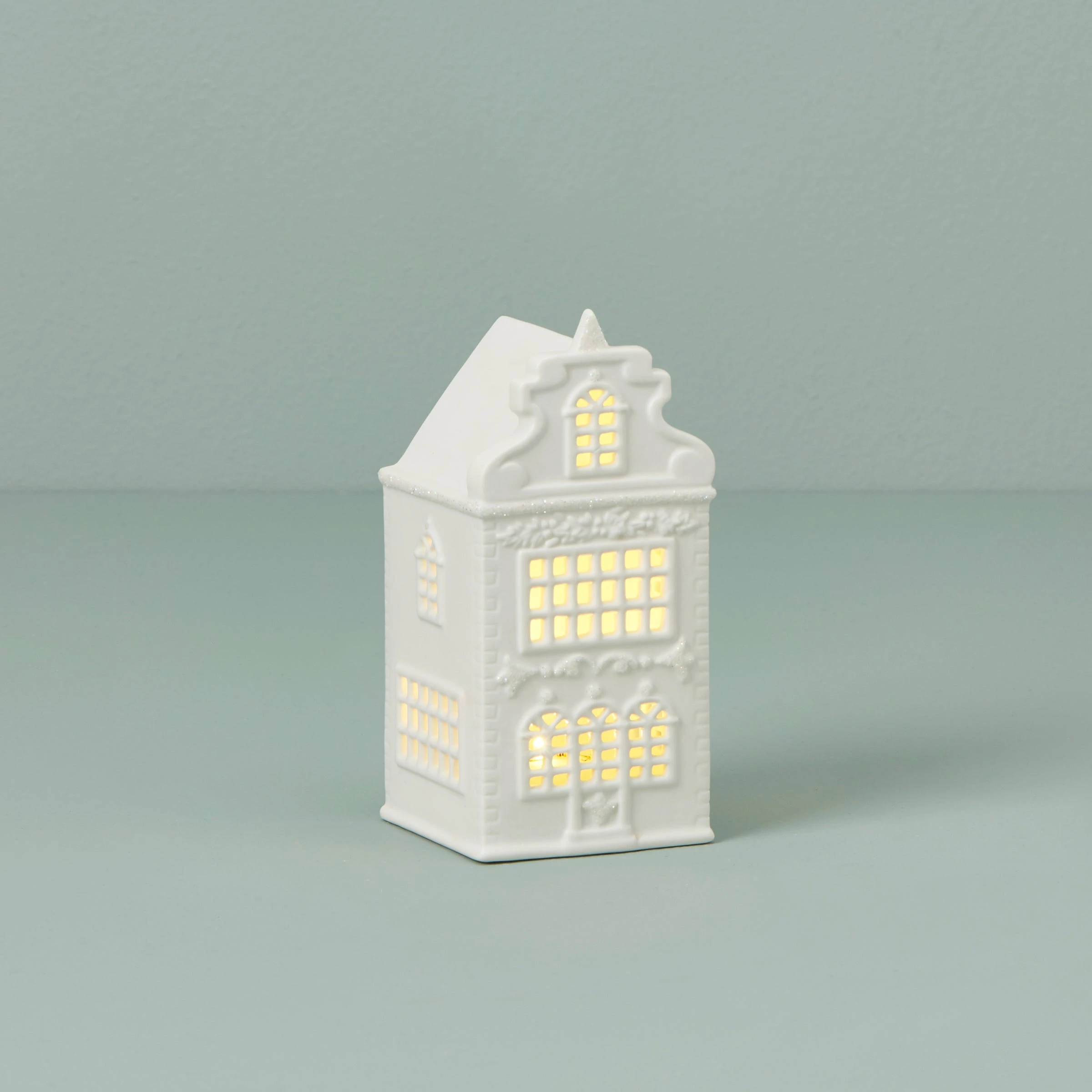 A must for your mantel, this ivory porcelain garland-decorated house figurine features pierced windows and light-up detail to create a peaceful, glowing scene.