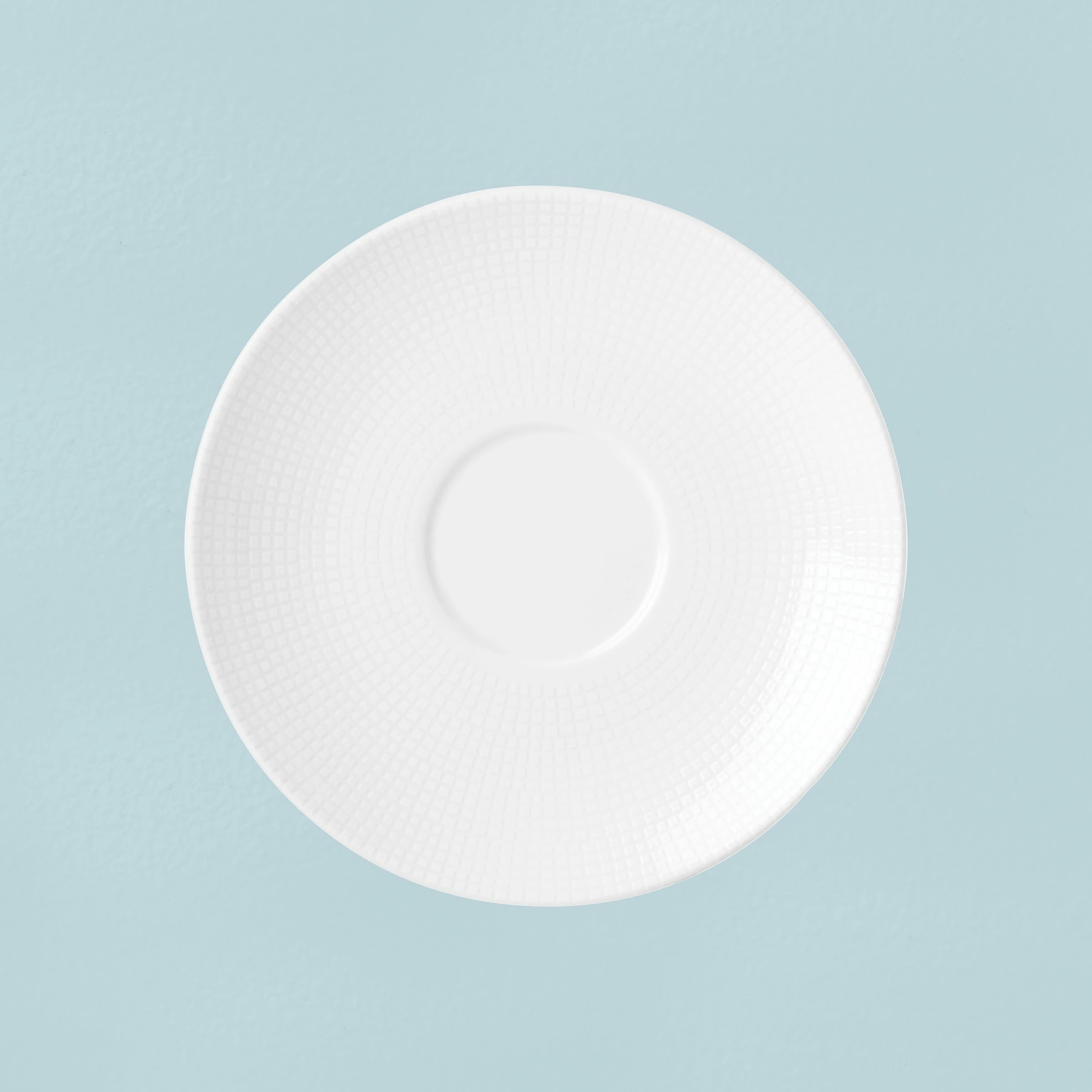 This saucer is not only stunning but also a must-have kitchen essential. Elegant bone china embodies a mixture of ancient artistry and clean modernism. Crafted with an interesting crosshatched texture for both functionality and beauty.