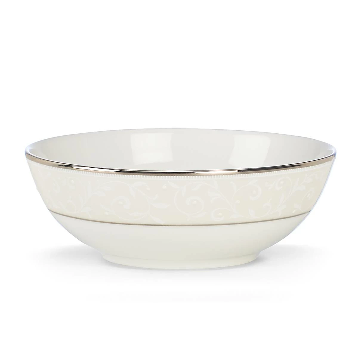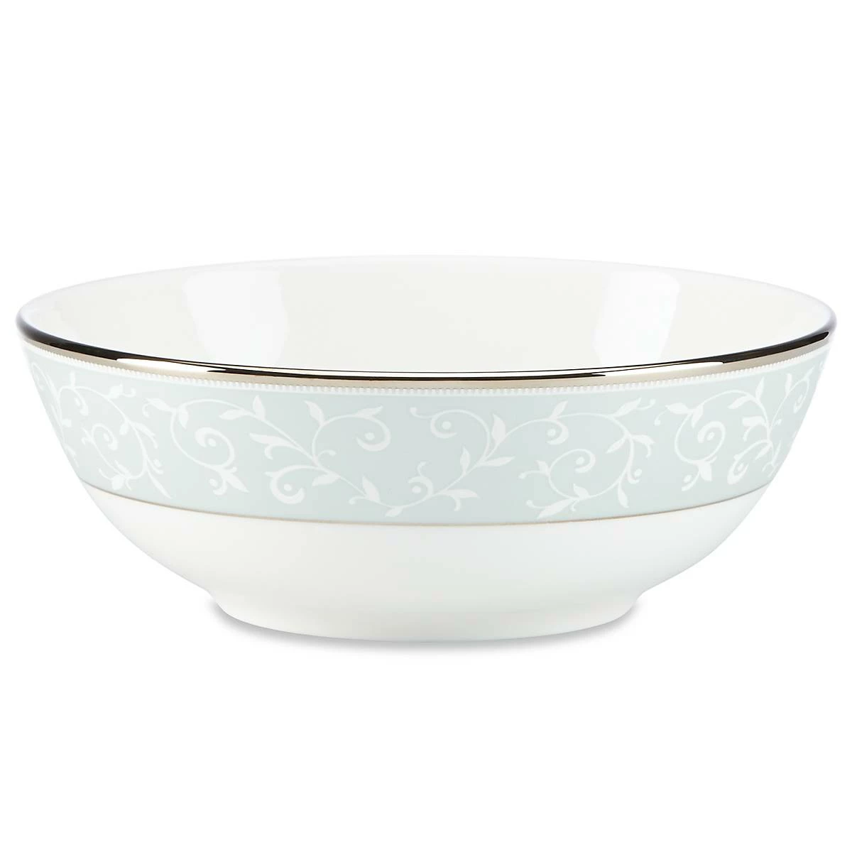 Elegant and versatile, the Opal Innocence Blue Place Setting Bowl features a soft blue motif of scrolling dots. This ornate and durable bone china bowl is dishwasher-safe, and is accented in precious platinum.