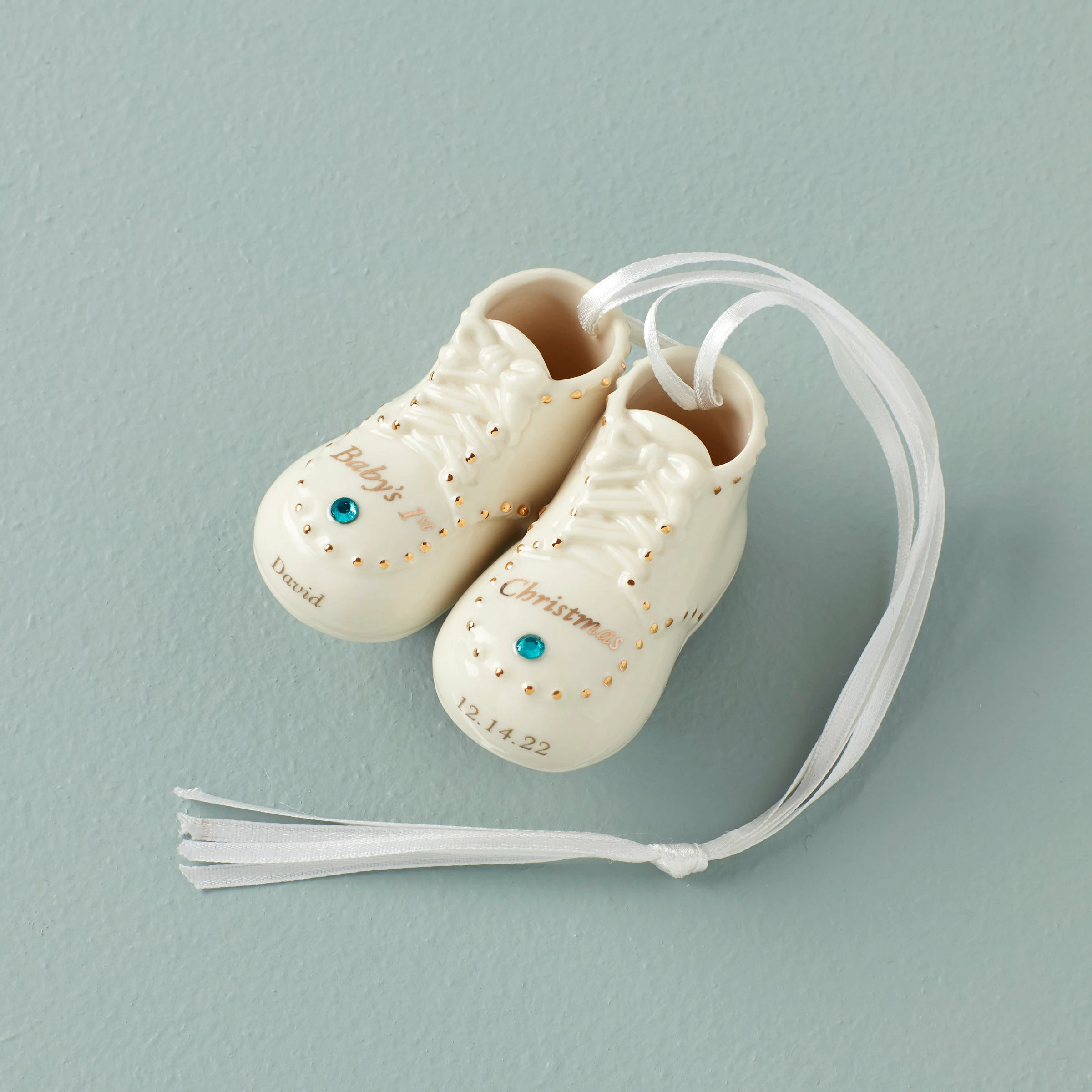 Lenox helps remember milestones with the Baby’s First Steps Ornament. This memento is just one step in your child’s life but remember it forever with this personalized tiny shoe ornament.