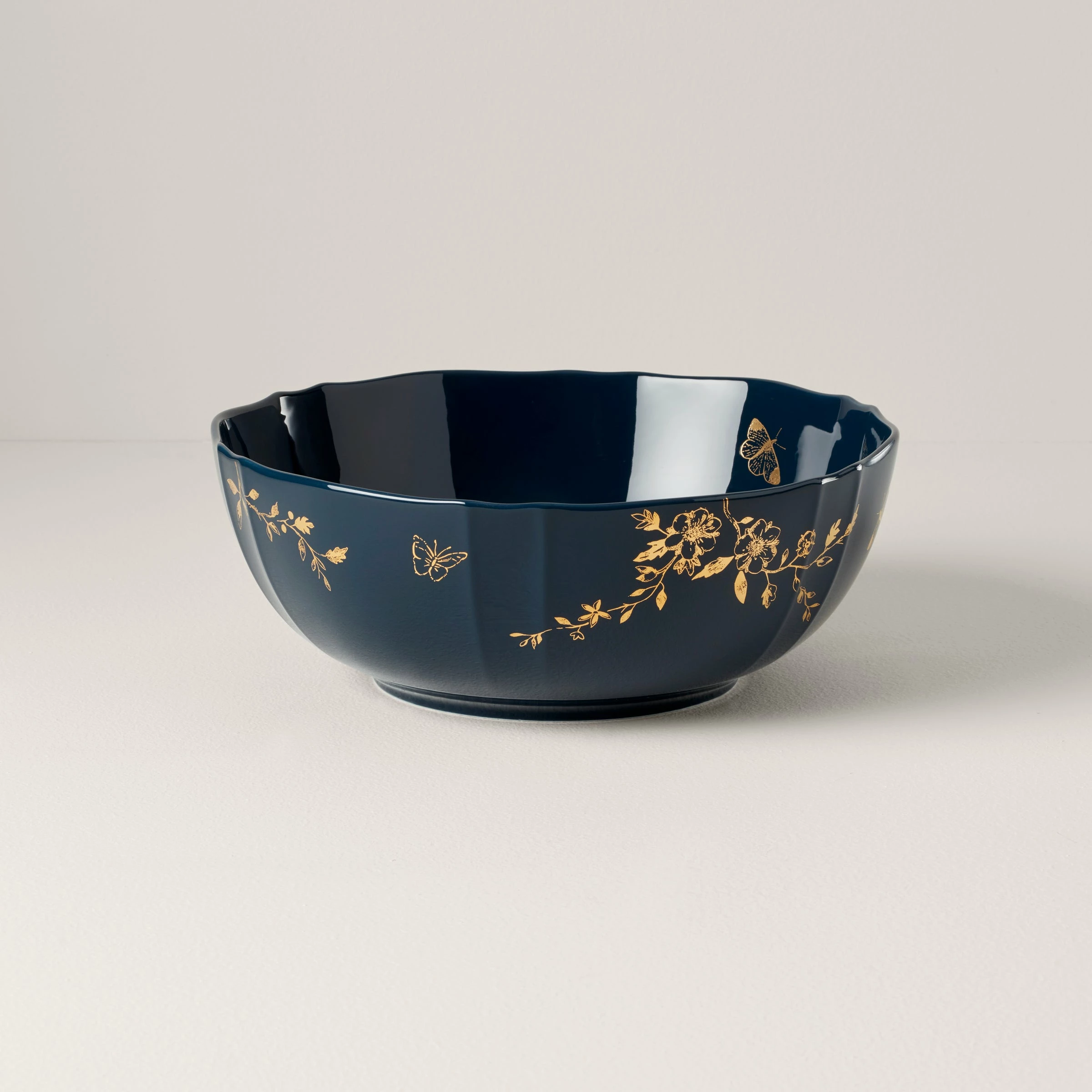 Open your home to a lush English garden with the Sprig & Vine collection. Inspired by the beauty of vintage textiles, this serving bowl combines botanicals and bold colors for a backyard aesthetic that will bring new life to your table. Gold metallic adds a gleaming touch to give this floral piece its perfect finish.