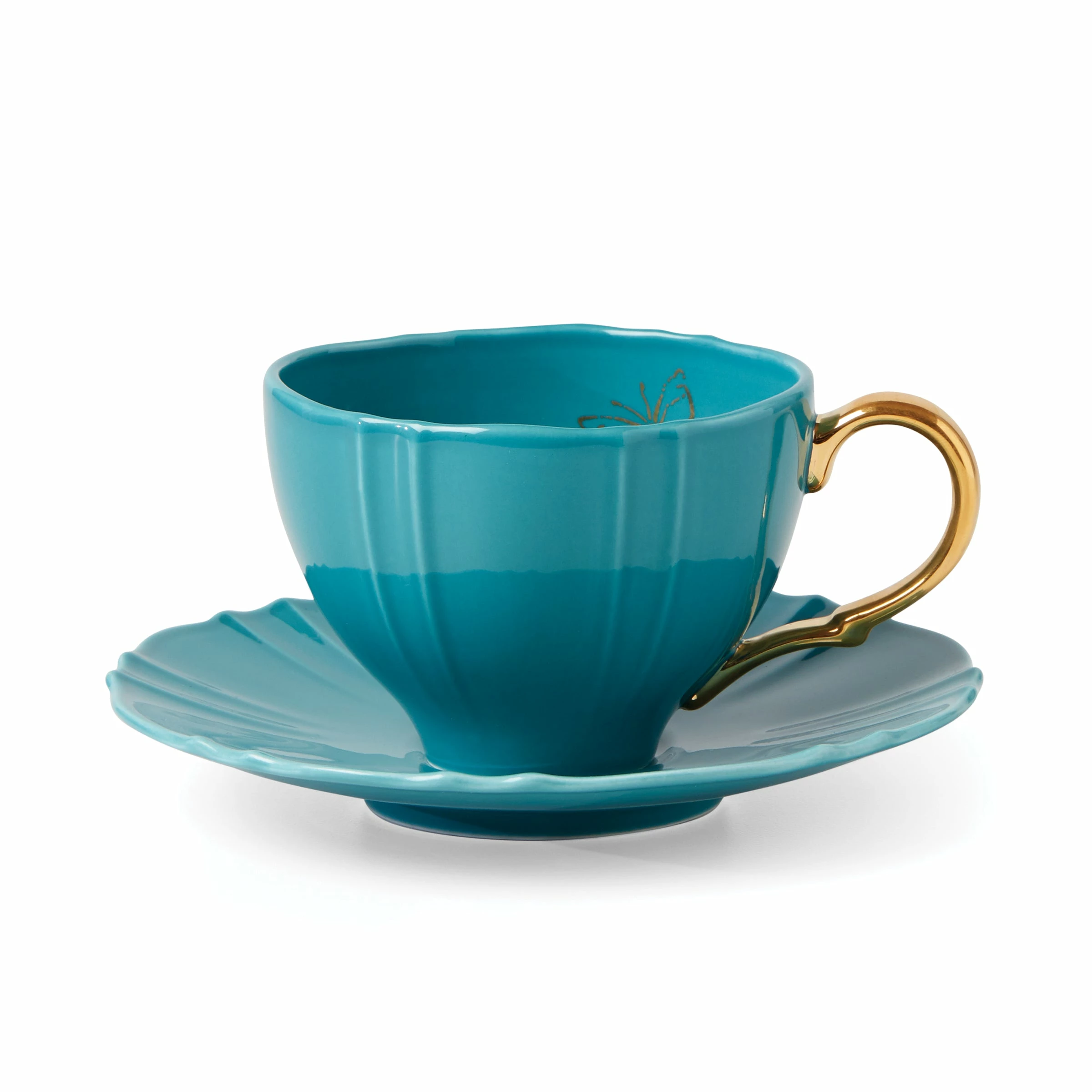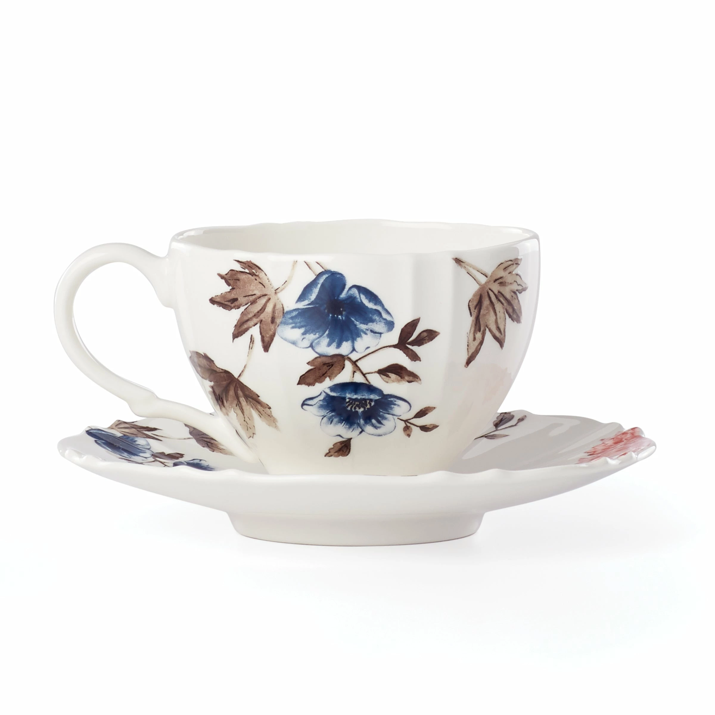 The Sprig & Vine teacup and saucer is the perfect way to enjoy your morning tea or coffee. This collection brings the beauty and bright colors of a lush English garden to your home.